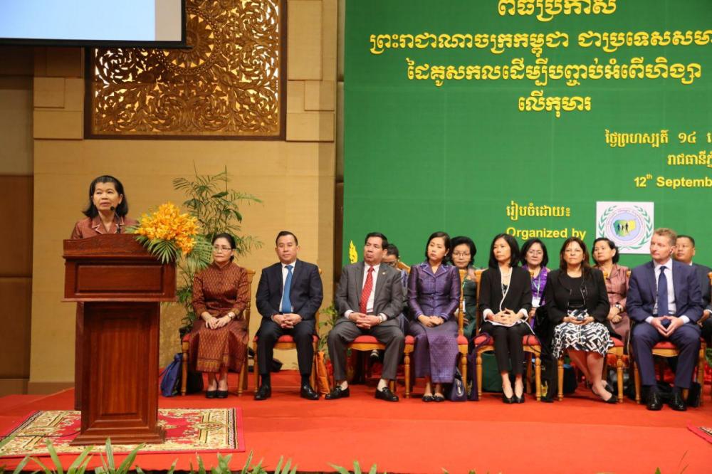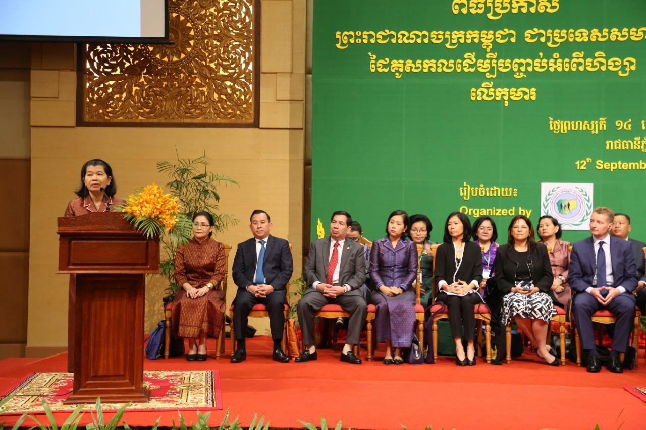 ឆ្លៀតក្នុងឱកាសនោះលោកជំទាវ ក៏បានលើកឡើងអំពីកិច្ចខិតខំប្រឹងប្រែងរបស់សម្តេចអគ្គមហាសេនាបតីតេជោ ហ៊ុន សែន នាយករដ្ឋមន្ត្រី នៃព្រះរាជាណាចក្រកម្ពុជា តាមរយៈក្រសួងសង្គមកិច្ច អតីតយុទ្ធជន និងយុវនីតិសម្បទា រួមជាមួយមូលនិធិសហប្រជាជាតិដើម្បីកុមារ និងស្ថាប័នពាក់ព័ន្ធ ក្នុងការទប់ស្កាត់ នូវអំពើហិង្សាលើកុមារ រហូតទទួលបានការអនុញ្ញាតពីប្រមុខរាជរដ្ឋាភិបាល ក្នុងការប្រកាសជាផ្លូវការថា ប្រទេសកម្ពុជា បានក្លាយខ្លួនជាសមាជិកនៃប្រទេសដៃគូសកល ដើម្បីបញ្ចប់អំពើហិង្សាលើកុមារ ដោយបានក្លាយជាប្រទេសនាំមុខទី៤ក្នុងតំបន់ បន្ទាប់ពីប្រទេសឥណ្ឌូណេស៊ី ហ្វីលីពីន និងប្រទេសម៉ុងហ្គោលី នៅចំពោះមុខវត្តមានរបស់អ្នកពាក់ព័ន្ធសំខាន់ៗ និងបង្ហាញអំពីការប្តេជ្ញា ចិត្តដ៏ខ្លាំងក្លារបស់កម្ពុជាក្នុងការបញ្ចប់អំពើហិង្សាលើកុមារ។