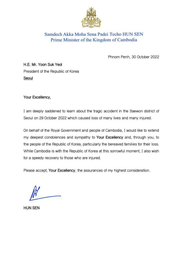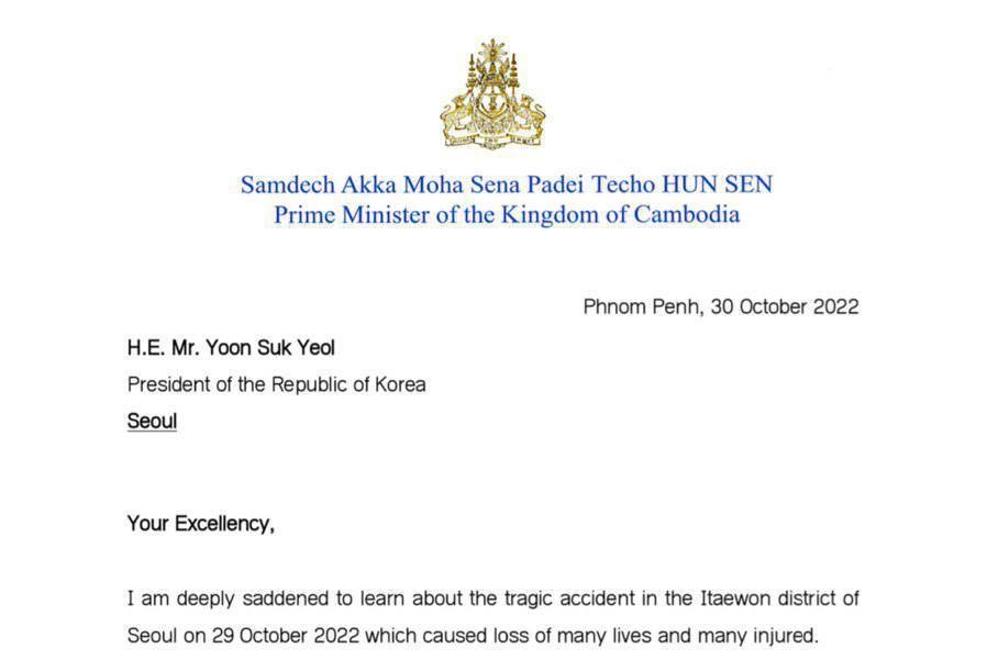 សម្តេចតេជោ ហ៊ុន សែន ចូលរួមរំលែកទុក្ខជាមួយកូរ៉េខាងត្បូង ចំពោះហេតុការណ៍សោកនាដកម្មរត់ជាន់គ្នាOne-Minuteអត្ថបទដោយ៖AMS OneMinute #ams1minute AMS OneMinuteអត្ថបទមុនអត្ថបទបន្ទាប់