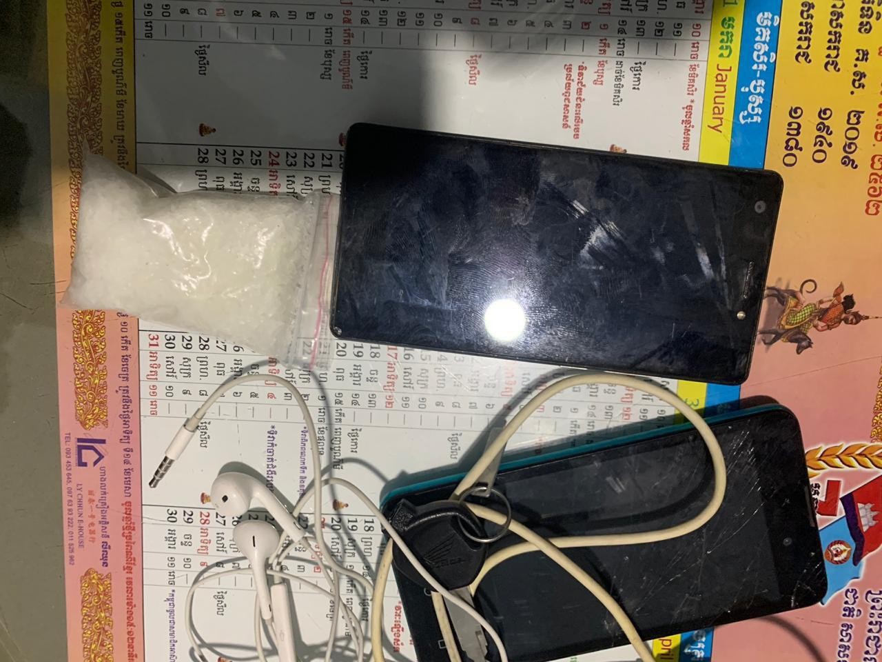 ជនសង្ស័យឈ្មោះ នី មនោ ភេទប្រុស អាយុ២៣ឆ្នាំ ស្នាក់នៅភូមិគពង់លើ ឃុំត្រាលត្រាច ស្រុកក្រគរ ខេត្តពោធិ៍សាត់។ សមត្ថកិច្ចដកហូតបាន៖ ក្រាមសថ្លា ០២កូនថង់តូច និងទូរសព្ទដៃ០១គ្រឿង។