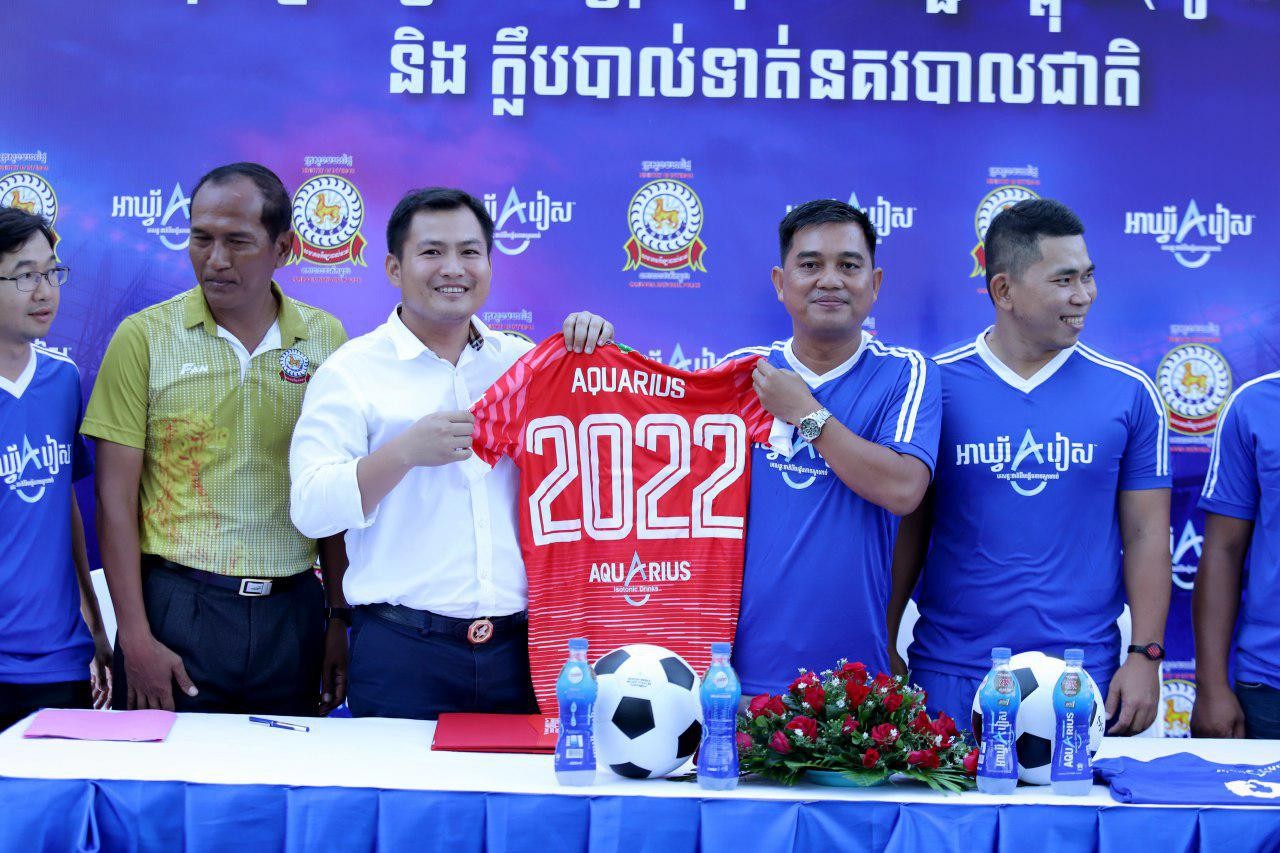 ពិធីចុះអនុស្សារណៈនេះ ក្រុមហ៊ុនភេសជ្ជៈកម្ពុជា (កូកា-កូឡា) បានព្រមព្រៀងឧបត្ថម្ភធំនូវសម្ភាររួមមាន៖ ផ្គត់ផ្គង់ភេសជ្ជៈបង្កើនជាតិទឹកអាឃ្វ័ររៀស (Aquarius) ទឹកបរិសុទ្ធដាសានី Dasani និងសម្ភារកីឡាផ្សេងៗទៀត សម្រាប់ការប្រើប្រាស់ជាប្រចាំទៅដល់ក្លិបបាល់ទាត់នគរបាលជាតិក្នុងរយៈពេល១៦ខែ។ អាឃ្វ័ររៀស គឺជាពាណិជ្ជសញ្ញាដ៏ល្បីមួយរបស់ក្រុមហ៊ុនកូកា-កូឡា ហើយបានក្លាយជាពាណិជ្ជសញ្ញាដែលឈានមុខគេចំណាត់ថ្នាក់លេខ១ ផ្នែកភេសជ្ជៈបំពេញជាតិទឹក នៅក្នុងប្រទេសជប៉ុន។ រីឯនៅប្រទេសកម្ពុជាវិញ អាឃ្វ័ររៀស ត្រូវបានទទួលស្គាល់ថា ជាពាណិជ្ជសញ្ញាដ៏មានប្រជាប្រិយភាព និង លេចធ្លោ ក្នុងចំណោមប្រភេទផលិតផលដែលមានការប្រកួតប្រជែងខ្ពស់។ អាឃ្វ័ររៀស តែងតែយកចិត្តទុកដាក់ និងលើកស្ទួយដល់សកម្មភាពកីឡាស្ទើរគ្រប់ប្រភេទ ចាប់តាំងពីកីឡាកម្រិតមូលដ្ឋាន ស្រុក-ខណ្ឌ ខេត្ត-រាជធានី រហូតដល់ថ្នាក់ជាតិ។ តួយ៉ាង អាឃ្វ័ររៀសបានឧបត្ថម្ភធំដល់កម្មវិធី “កីឡាសិស្សថ្នាក់ជាតិ”កាលពីខែមិថុនា ដែលនោះជាការប្រកួតប្រជែងថ្នាក់ជាតិលើកដំបូងសម្រាប់សិស្សកម្រិត ចំណេះទូទៅ និងមានការចូលរួមពីកីឡាករ កីឡាការិនី ជាសិស្សានុសិស្សរហូតដល់ទៅជាង៣,០០០នាក់លើ១១ វិញ្ញាសាផ្សេងៗគ្នា។ លើសពីនេះទៀត ថ្មីៗនេះ ក្រុមហ៊ុនរៀបចំការប្រកួតបាល់ទាត់មួយមានឈ្មោះថា “ពានរង្វាន់បាល់ទាត់អាឃ្វ័ររៀសខណ្ឌកំបូល” ដែលមានសមាសភាពចូលរួមពីយុវជនមកពីសង្កាត់ទាំង៧ ក្នុងខណ្ឌកំបូល។