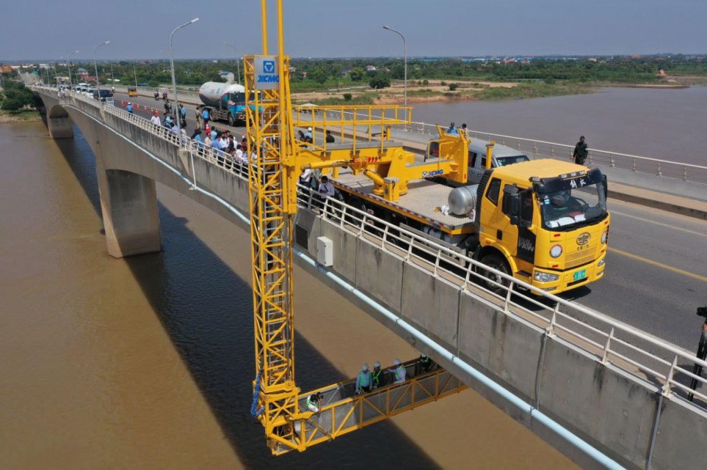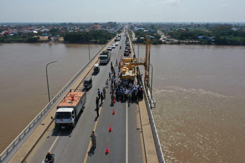 រដ្ឋមន្ត្រីក្រសួងសាធារណការ នាំយករថយន្តភ្ជាប់ម៉ាស៊ីនទំនើប ចុះត្រួតពិនិត្យគុណភាពស្ពានព្រែកតាមាក់, រកឃើញមានបញ្ហាមួយចំនួនត្រូវជួសជុលឡើងវិញ