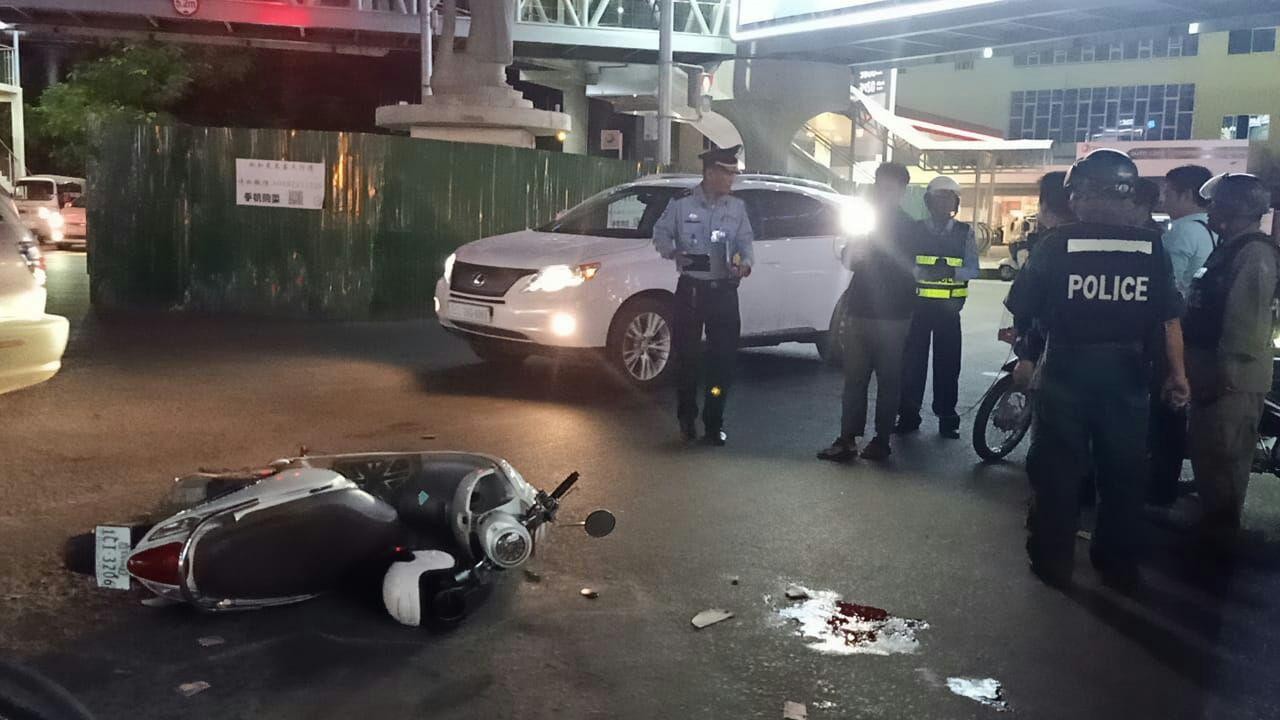បុរសម្នាក់ជិះម៉ូតូបុករថយន្តកំពុងឆ្លងផ្លូវ រងរបួសធ្ងន់