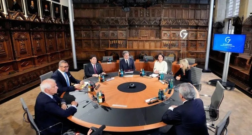 រដ្ឋមន្ត្រីការបរទេសនៃបណ្តាប្រទេសប្រជាធិបតេយ្យដ៏មានស្តុកស្តម្ភផុតលេខទាំង៧នេះ បានលើកឡើងបន្ទាប់ពីជំនួបប្រជុំគ្នារយៈពេល ២ថ្ងៃនៅទីក្រុង Muenster ភាគខាងលិចប្រទេសអាល្លឺម៉ង់ ដូច្នេះថា៖ «យើងនឹងនៅឈរយ៉ាងរឹងមាំជាមួយអ៊ុយក្រែនឲ្យបានយូរបំផុតតាមតែអាចធ្វើបាន»។