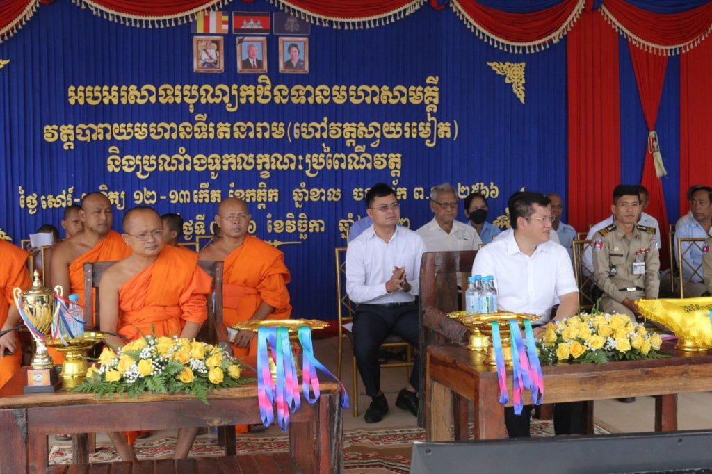 ព្រះសច្ចានុបាល នឿម វុទ្ឋី ព្រះចៅអធិការវត្ត មានសង្ឃដីកាថា៖ថ្វីត្បិតតែមេរោគកូវីដ-១៩មិនទាន់សាបរលាបអស់ពីកម្ពុជានិងអស់ពីក្នុងពិភពលោកក្តី តែកម្ពុជា ក្រោមការដឹកនាំប្រកបដោយគតិបណ្ឌិតនិងឈ្លាវៃរបស់សម្តេចអគ្គមហាសេនាបតីតេជោ ហ៊ុន សែន នាយករដ្ឋមន្ត្រី សម្តេចតេជោសែន បានខិតខំប្រឹងប្រែងពុះពារស្វែងរកវ៉ាក់សាំងចាក់ការពារជូនបងប្អូនប្រជាពលរដ្ឋនៅទូទាំងប្រទេសដោយឥតគិតថ្លៃ តាំងពីដូសជំរុញរហូតដល់ដូសមូលដ្ឋាន និងបានធ្វើឱ្យស្ថានភាពនៃការឆ្លងមានការថយចុះជាលំដាប់ហើយសម្រេចបើកប្រទេសពេញលេញឡើងវិញតាមរយៈការណែនាំឱ្យបងប្អូនគ្រប់ទីកន្លែងរៀនរស់តាមបែបគន្លងថ្មីដើម្បីទប់ស្កាត់ ការពារការឆ្លងរីករាលដាលទៅក្នុងសហគមន៍ អាស្រ័យដោយគុណបំណាច់ដ៍ធំធេងនេះទើបយើងមានការជួបជុំធ្វើបុណ្យផ្សេងៗដោយរីករាយ។ព្រះចៅអធិការបន្តថា៖ពិធីប្រណាំងទូក បែបប្រពៃណីនេះ ប្រារព្ធឡើងក្នុងគោលបំណងដើម្បីចូលរួមប្រារព្ធព្រះរាជពិធីបុណ្យអុំទូក បណ្តែតប្រទីប សំពះព្រះខែនិងអកអំបុករបស់ជាតិ ដើម្បីថែរក្សាប្រពៃណីរវាងវត្តនិងសហគមន៍ដែលធ្លាប់មានមកកុំឱ្យបាត់បង់ ដើម្បីអបអរសាទរចំពោះបុណ្យកថិនទានសាមគ្គីដង្ហែចូលវត្ត និងដើម្បីរំឭកដឹងគុណចំពោះវត្ថុសក្កិសិទ្ធិ និងអស់លោកអ្នកទាំងឡាយដែលតែងតែអភិបាល រក្សានូវទីអារាមរបស់យើងនេះ ឱ្យបានសុខសាន្តនិងសម្បូរសប្បាយ។ថ្លែងបើកពិធីប្រណាំងទូក ព្រះវិជ័យរង្សី បណ្ឌិត ឡាច លាង ព្រះរាជាគណៈថ្នាក់កិត្តិយស ព្រះគ្រូប្រាសាទរង្សី អនុគណក្រុងសៀមរាប ព្រះធម្មធរគណខេត្ត បានចាត់ទុកការរៀបចំឱ្យមានពិធីប្រណាំងទូកឱបស្ទបជាមួយនឹងអង្គកឋិនទាន ថាជាការលើកតម្កើងវប្បធម៌ជាតិ តាមរយៈព្រះពុទ្ធសាសនា ព្រោះថា ព្រះពុទ្ធសាសនាបានដើរតួនាទីយ៉ាងសំខាន់និងមានគុណតម្លៃមិនអាចកាត់បានចំពោះ សង្គមខ្មែរស្ទើរគ្រប់វិស័យ ដូចជាវិស័យសុខាភិបាល វិស័យសង្គមកិច្ច វប្បធម៌ នយោបាយ អប់រំ ជាដើម។