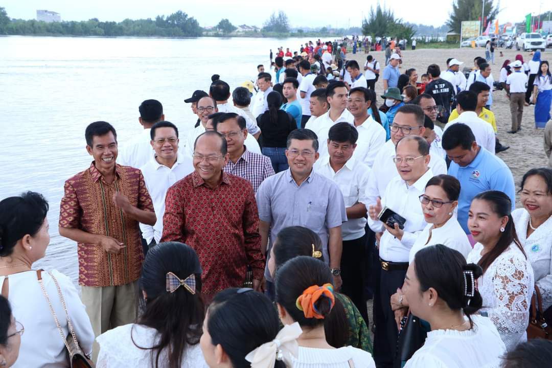 ខេត្តកំពត ៖ ព្រឹកថ្ងៃទី០៥ ខែវិច្ឆិកា ឆ្នាំ២០២២ នៅមាត់ព្រែកកំពង់បាយ ក្រុងកំពត ខេត្តកំពត ឯកឧត្តមបណ្ឌិត ម៉ៅ ធនិន អភិបាលខេត្ត និង លោកជំទាវ ហ៊ុន ចាន់ធី ម៉ៅ ធនិន និង ឯកឧត្តម ជិង ផល្លា ប្រធានក្រុមពីព្រឹក្សាខេត្ត បានអញ្ជើញជាអធិបតី ក្នុងពិធីក្រុងពាលី ដើម្បីបួងសួងសុំសេចក្តីសុខ សិរីសួរស្តី ជ័យមង្គលក្នុងពិធី បុណ្យអុំទូក អកអំបុក សំពះព្រះខែ និងបណ្តែតប្រទីប ។