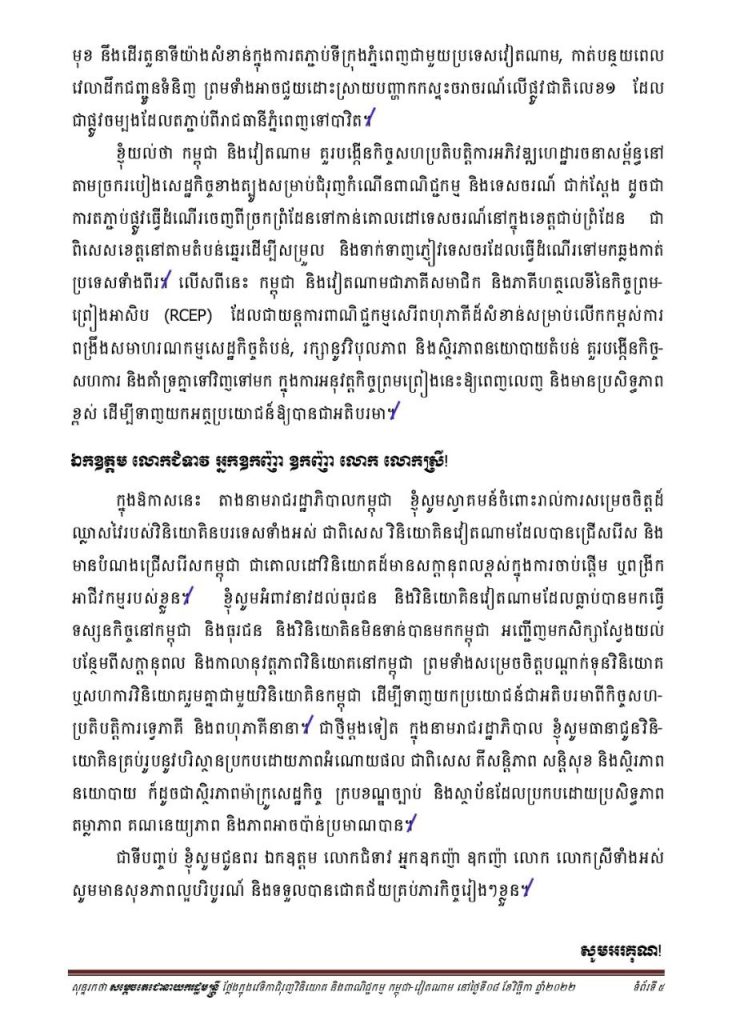 សុន្ទរកថារបស់ សម្តេចតេជោ ហ៊ុន សែន នាយករដ្ឋមន្ត្រីកម្ពុជា ថ្លែងក្នុងវេទិកាជំរុញវិនិយោគ និងពាណិជ្ជកម្ម កម្ពុជា-វៀតណាម ឆ្នាំ២០២២ ថ្ងៃទី០៨ ខែវិច្ឆិកា ឆ្នាំ២០២២