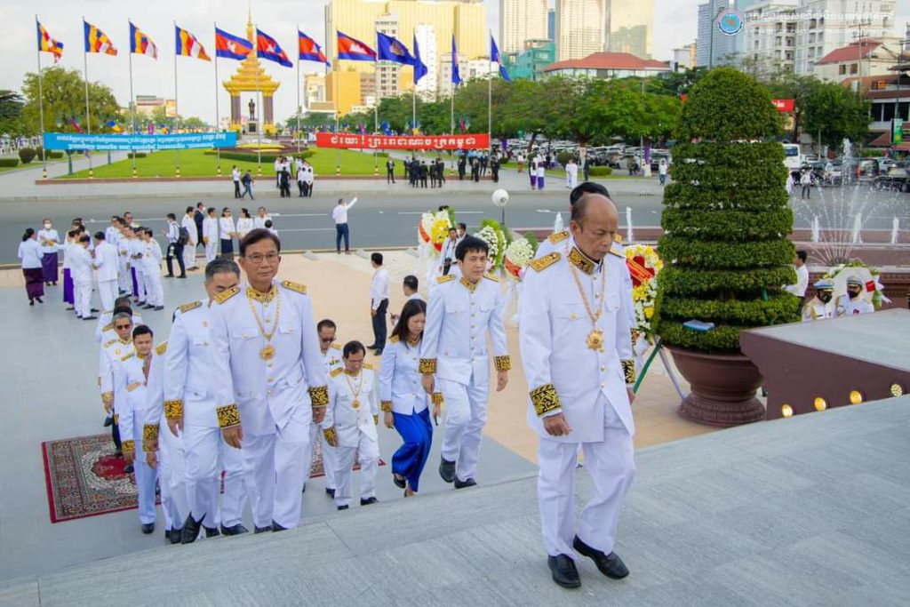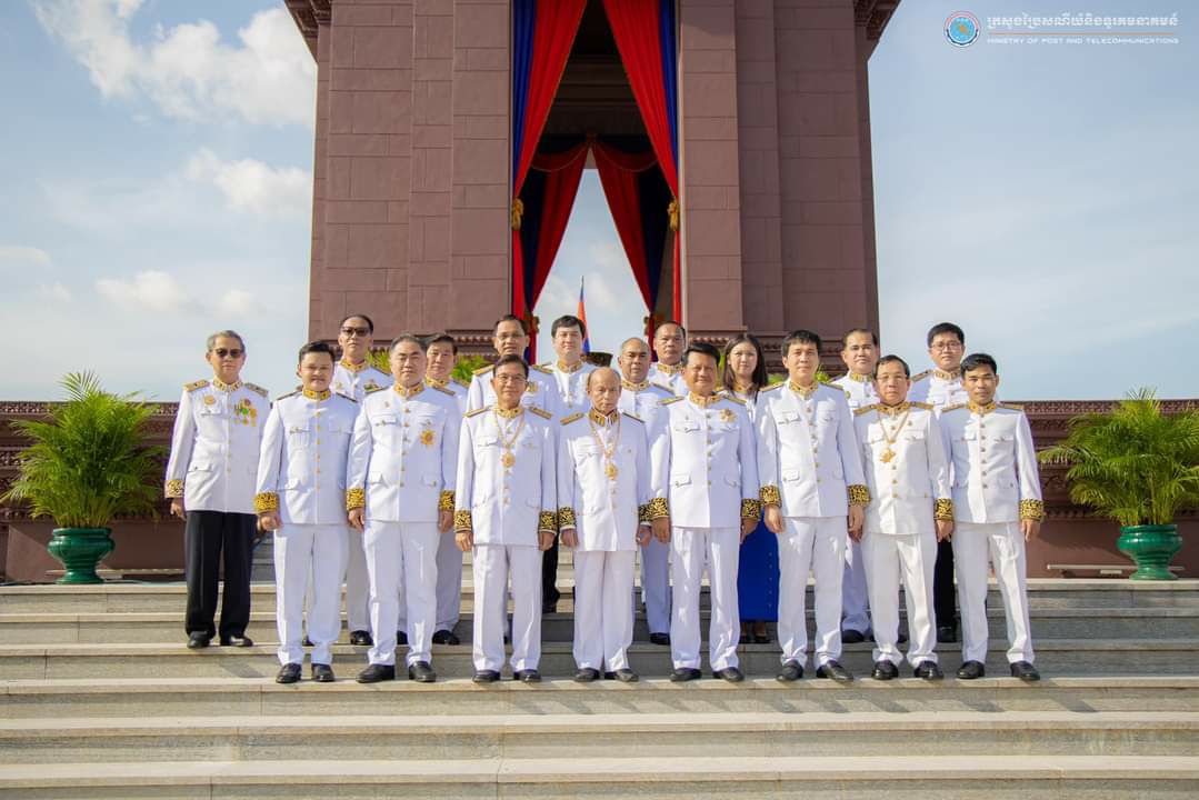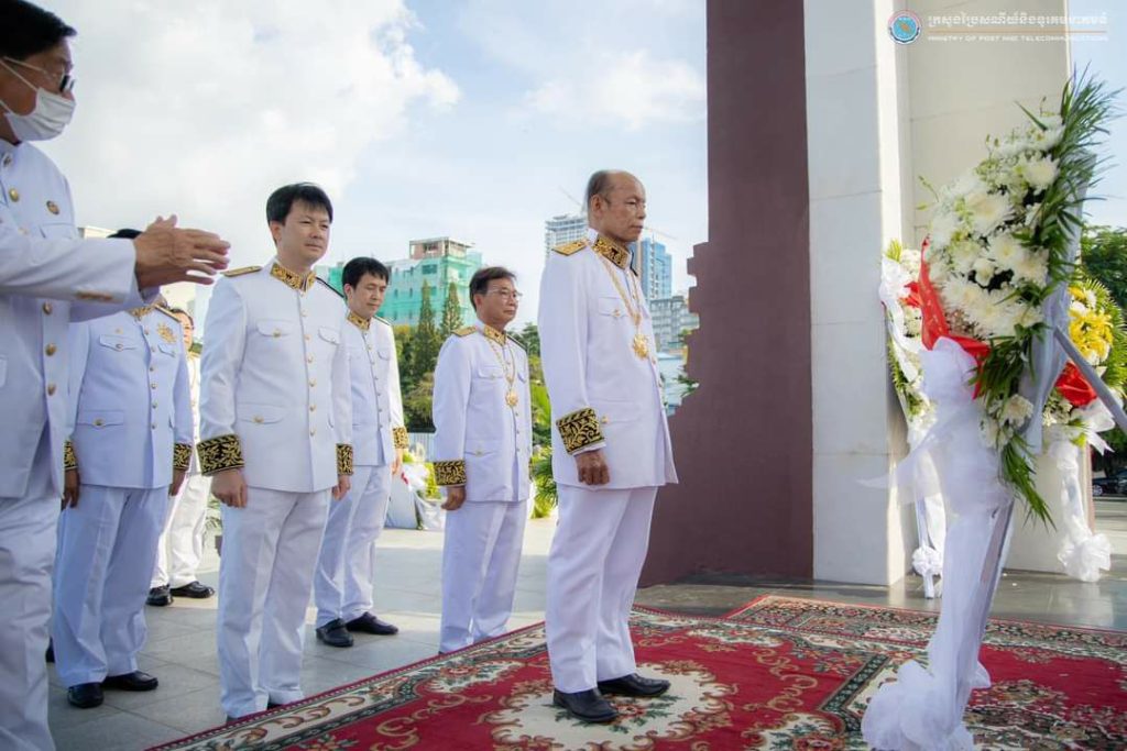 ថ្នាក់ដឹកនាំក្រសួងប្រៃសណីយ៍ដាក់កម្រងផ្កាគោរពវិញ្ញាក្ខន្ធខួបអនុស្សាវរីយ៍លើកទី៦៩ នៃទិវាបុណ្យឯករាជ្យជាតិ នៅវិមានឯករាជ្យ