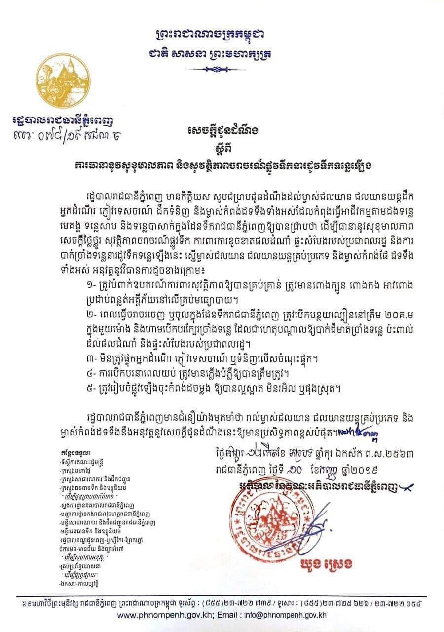 រដ្ឋបាលរាជធានីភ្នំពេញ៖ សេចក្តីជូនដំណឹងស្តីពីការធានានូវសុខុមាលភាព និងសុវត្ថិភាពចរាចរណ៍ផ្លូវទឹងនារដូវទឹកទន្លេឡើងព័ត៌មានអត្ថបទដោយ៖Kien Sereyvuth Kien SereyvuthIT Technical Supportអត្ថបទមុនអត្ថបទបន្ទាប់