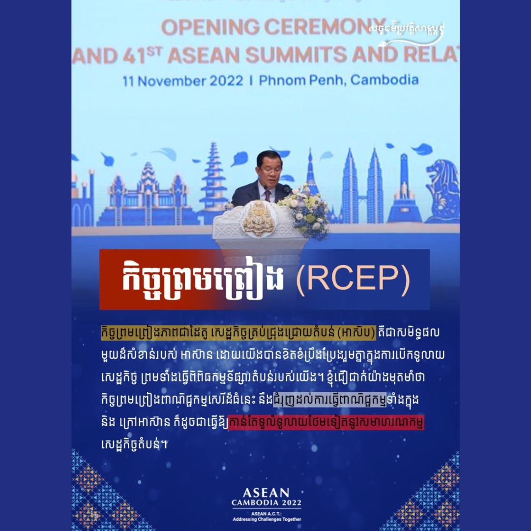 កិច្ចព្រមព្រៀង (RCEP)ដំណើររបស់កម្ពុជាសច្ចធម៌ប្រវត្តិសាស្ត្រអត្ថបទដោយ៖លី ប៊ុនហេង - Ly Bunheng សច្ចធម៌ប្រវត្ដិសាស្រ្ដ #ព្រះរាជាណាចក្រកម្ពុជា #ភាពជាដៃដូសេដ្ឋកិច្ចគ្រប់ជ្រុងជ្រោយ #កិច្ចព្រមព្រៀង #អាសិប #សមិទ្ធផលអាស៊ាន Facebook Page: សច្ចធម៌ប្រវត្ដិសាស្រ្ដTelegram Channel លី ប៊ុនហេង - Ly Bunhengលី ប៊ុនហេង ប្រធានផ្នែកផ្សព្វផ្សាយ នៃសច្ចធម៌ប្រវត្តិសាស្រ្ដអត្ថបទមុនអត្ថបទបន្ទាប់