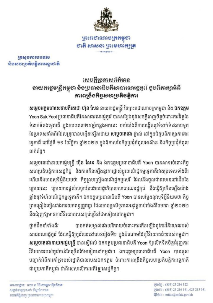 នាយករដ្ឋមន្រ្តីកម្ពុជា និងប្រធានាធិបតីសាធារណរដ្ឋកូរ៉េ ជួបពិភាក្សាអំពីការពង្រឹងកិច្ចសហប្រតិបត្តិការ 🇰🇭🇰🇷One-Minuteអត្ថបទដោយ៖AMS OneMinute #ams1minute AMS OneMinuteអត្ថបទមុនអត្ថបទបន្ទាប់