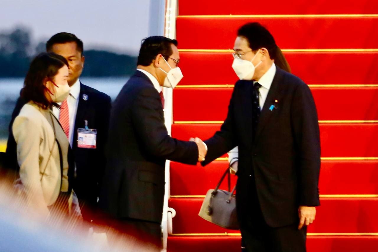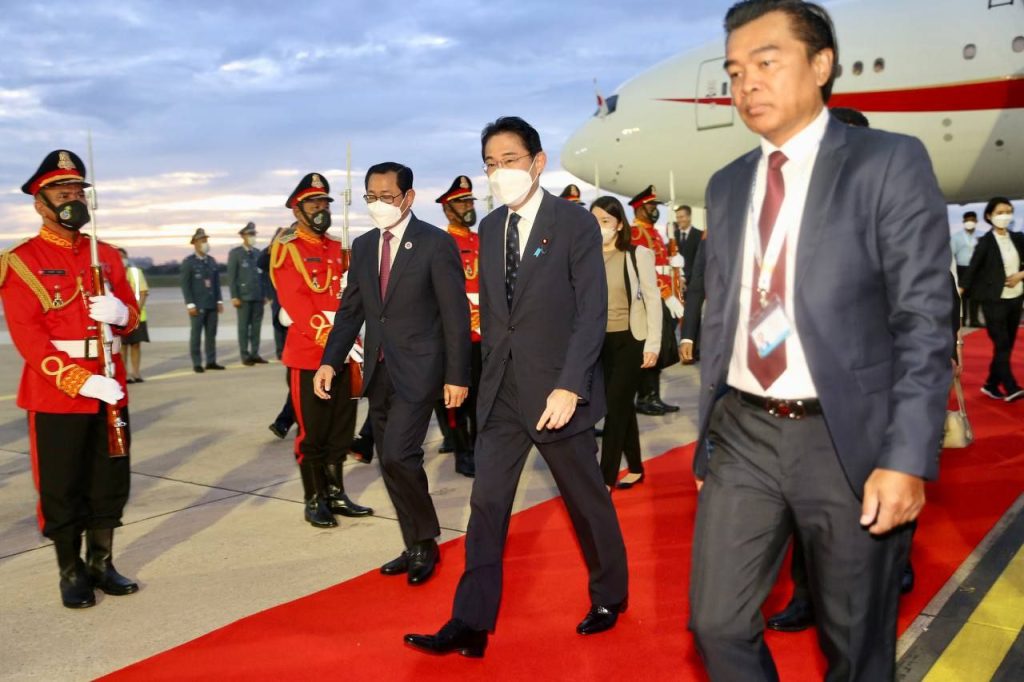 ភ្នំពេញ៖ ឯកឧត្តម Fumio Kishida នាយករដ្ឋមន្រ្តីជប៉ុន និងលោកជំទាវ បានអញ្ជើញដឹកនាំគណៈប្រតិភូមកដល់ព្រលានយន្តហោះអន្តរជាតិភ្នំពេញ នាព្រឹកថ្ងៃទី១២ ខែវិច្ឆិកា ឆ្នាំ២០២២នេះ ដើម្បីចូលរួមកិច្ចប្រជុំកំពូលអាស៊ាន-ជប៉ុន និងកិច្ចប្រជុំកំពូលពាក់ព័ន្ធ នៅព្រះរាជាណាចក្រកម្ពុជា ៕ ដោយ ៖ វណ្ណលុក