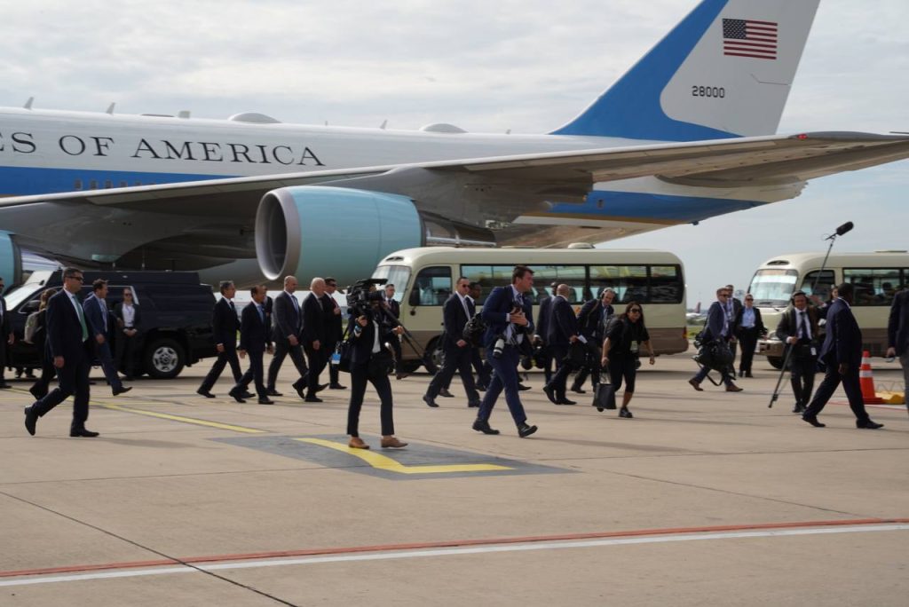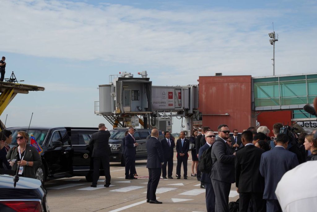 ភ្នំពេញ៖ ប្រធានាធិបតីសហរដ្ឋអាមេរិក អញ្ជើញមកដល់ព្រលានយន្តហោះអន្តរជាតិភ្នំពេញ ដើម្បីចូលរួមកិច្ចប្រជុំកំពូលអាស៊ាន-សហរដ្ឋអាមេរិក លើកទី១០ និងកិច្ចប្រជុំពាក់ព័ន្ធ នៅព្រះរាជាណាចក្រកម្ពុជា ។