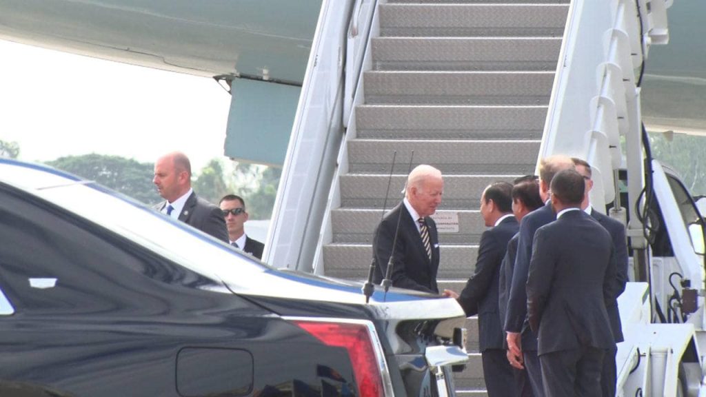 លោក ចូ បៃដិន ប្រធានាធិបតីសហរដ្ឋអាមេរិក បានអញ្ជើញមកដល់ប្រទេសកម្ពុជាហើយ ដើម្បីចូលរួមកិច្ចប្រជុំកំពូលអាស៊ាន ដែលកម្ពុជាធ្វើជាម្ចាស់ផ្ទះ