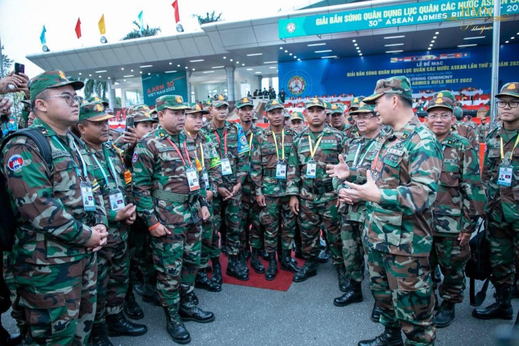 ក្រោយពីកិច្ចប្រជុំពហុភាគីមេបញ្ជាការកងទ័ពជើងគោកអាស៊ាន លោកឧត្តមសេនីយ៍ឯក ហ៊ុន ម៉ាណែត មេបញ្ជាការកងទ័ពជើងគោក បានអញ្ជើញចូលរួមក្នុងពិធីបិទការប្រកួតបាញ់កាំភ្លើងដៃកងទ័ពជើងគោកអាស៊ានលើកទី៣០ (ASEAN Armies Rifle Meet – AARM 30) នារសៀលថ្ងៃទី១១ វិច្ឆិកា ២០២២