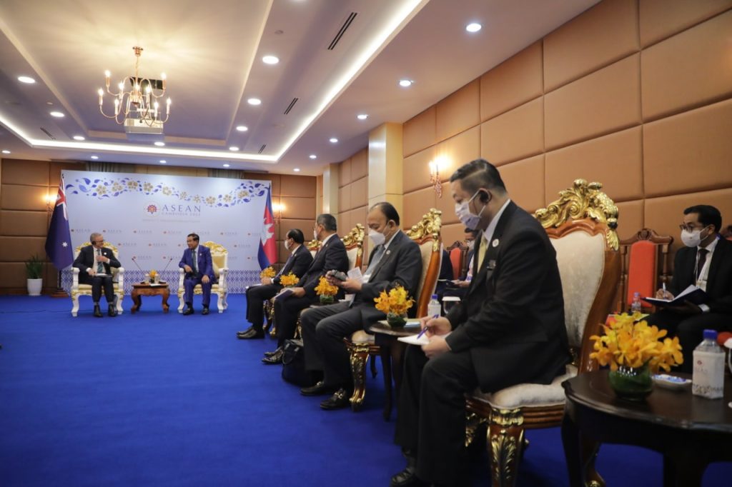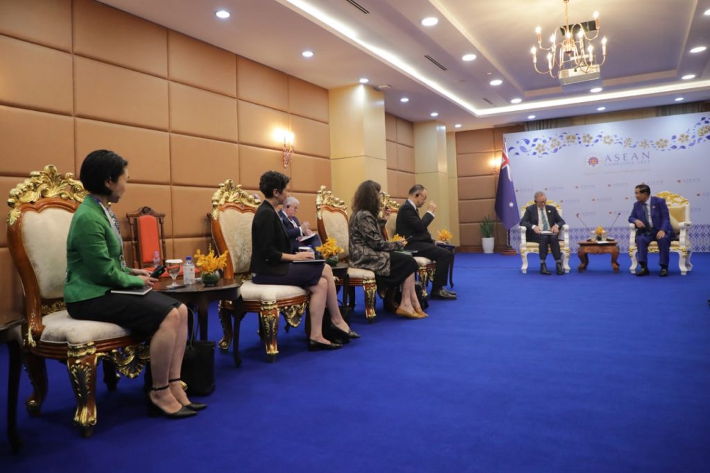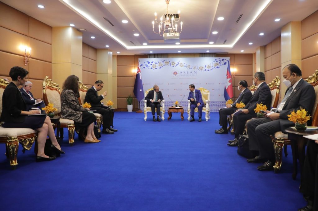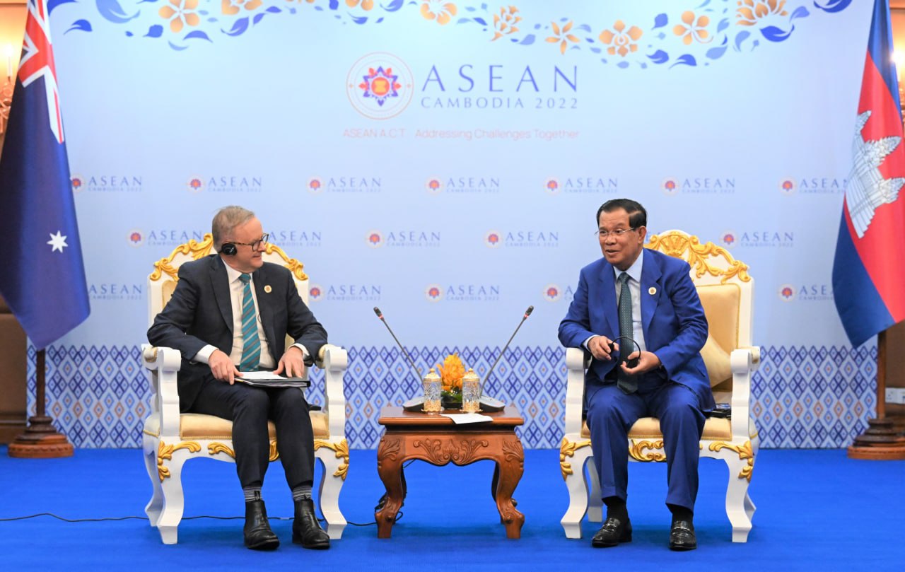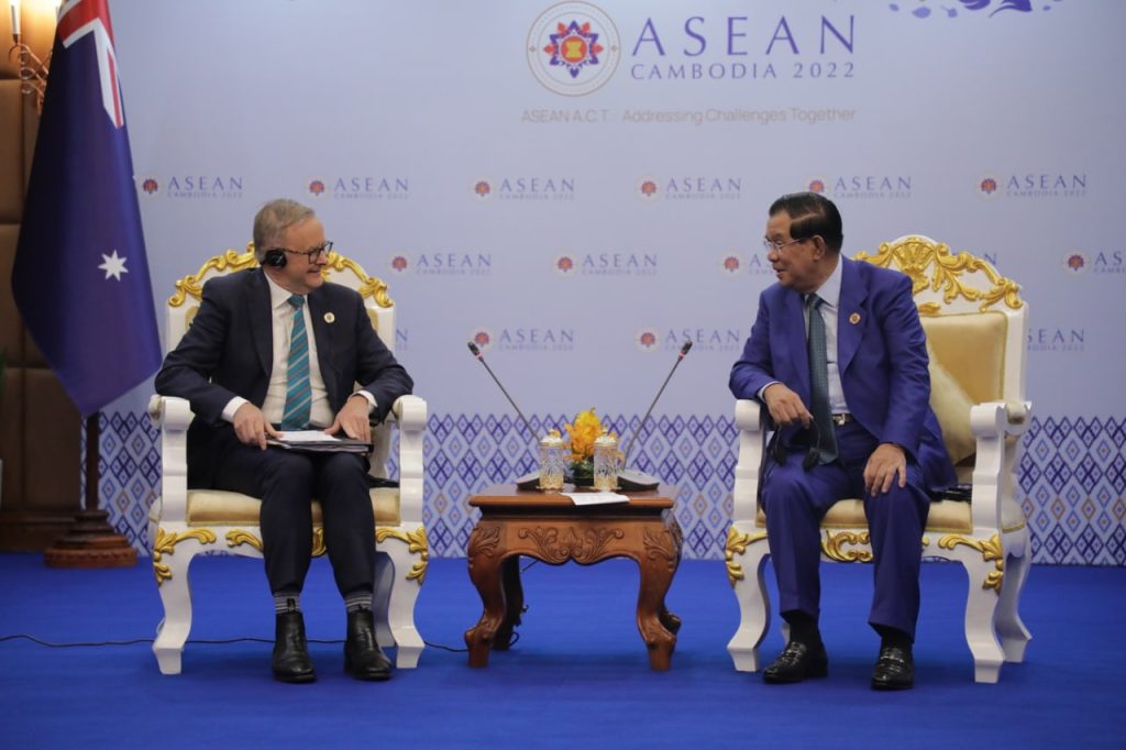 ភ្នំពេញ ៖ អូស្ត្រាលី នឹងបន្តគាំទ្រលើការអភិវឌ្ឍសេដ្ឋកិច្ចដោយចីរភាព សេដ្ឋកិច្ចឌីជីថល ថាមពលវ័យឆ្លាត សេដ្ឋកិច្ចបៃតង និងវិស័យដទៃទៀត ដើម្បីចូលរួមចំណែកធ្វើឲ្យប្រទេសកម្ពុជា រួមទាំងប្រទេសនៅក្នុងតំបន់ ទទួលបានស្ថេរភាព និងវិបុលភាព ។ នេះជាការបញ្ជាក់របស់ឯកឧត្តម Anthony Albanese នាយករដ្ឋមន្ត្រីអូស្ត្រាលី ក្នុងជំនួបពិភាក្សាការងារជាមួយសម្ដេចអគ្គមហាសេនាបតីតេជោ ហ៊ុន សែន នាយករដ្ឋមន្ត្រី នៃព្រះរាជាណាចក្រកម្ពុជា និងជាប្រធានអាស៊ាន នាព្រឹកថ្ងៃទី១២ ខែវិច្ឆិកា ឆ្នាំ២០២២ នៅសណ្ឋាគារសុខាភ្នំពេញ ។
