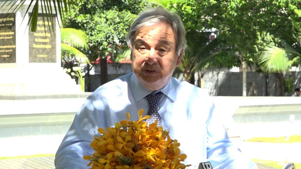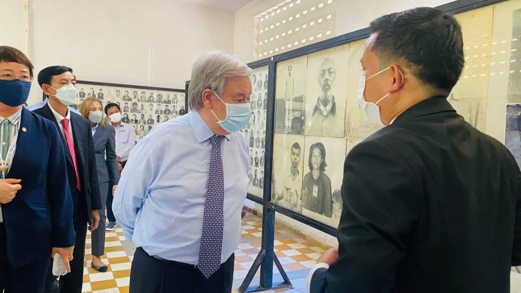 ភ្នំពេញ៖ លោក អាន់តូនីញ៉ូ គូតេរ៉េស (Antonio Guterres) អគ្គលេខាធិការ អង្គការសហប្រជាជាតិ(អ.ស.ប) និងគណៈប្រតិភូ នៅថ្ងៃទី១៣ខែវិច្ឆិកា បានធ្វើទស្សនកិច្ច សារមន្ទីរឧក្រិដ្ឋកម្ម ប្រល័យពូជសាសន៍ទួលស្លែង អំឡុងពេលលោកអញ្ជើញមកចូលរួមកិច្ចប្រជុំកំពូលអាស៊ាន និងអង្គការសហ ប្រជាជាតិ លើកទី១២ និងព្រឹត្តិការណ៍ពាក់ព័ន្ធនានានៅរាជធានីភ្នំពេញ។