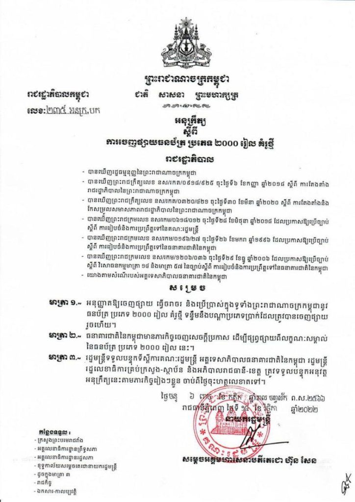 រាជរដ្ឋាភិបាលកម្ពុជា ប្រកាសដាក់ឱ្យចរាចរក្រដាសប្រាក់ ២០០០រៀល និង២០០ រៀល គំរូថ្មីជាផ្លូវការ ចាប់ពីថ្ងៃទី១៤ វិច្ឆិកា ២០២២នេះតទៅOne-Minuteអត្ថបទដោយ៖AMS OneMinute #ams1minute AMS OneMinuteអត្ថបទមុនអត្ថបទបន្ទាប់