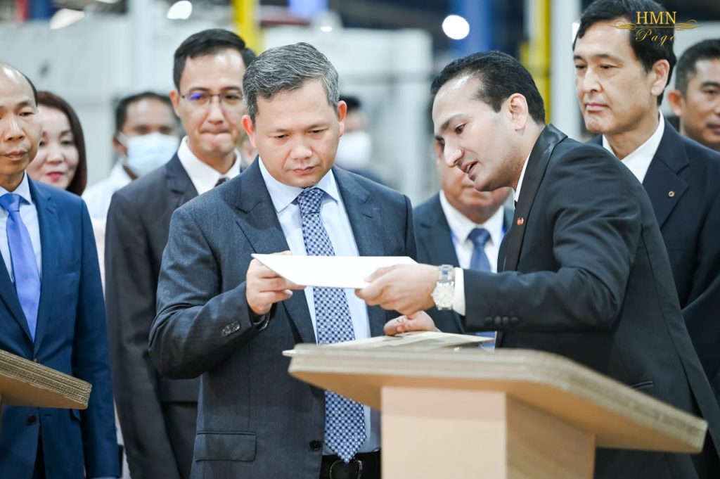 ឯឧ បណ្ឌិត ហ៊ុន ម៉ាណែត ក៏សូមអរគុណដល់ក្រុមហ៊ុន ដែលបានជ្រើសរើសយកកម្ពុជាជាគោលដៅក្នុងការវិនិយោគរយៈពេលវែង ដែលជាសញ្ញាវិជ្ជមានប្រកបដោយសុទិដ្ឋិនិយម ដែលបង្ហាញអំពីទំនុកចិត្តចំពោះលក្ខណៈអំណោយផលល្អនៃបរិយាកាសវិនិយោគ ក៏ដូចជាចំពោះសក្តានុពលដ៏រឹងមាំនៃវិស័យឧស្សាហកម្មនៅកម្ពុជា។