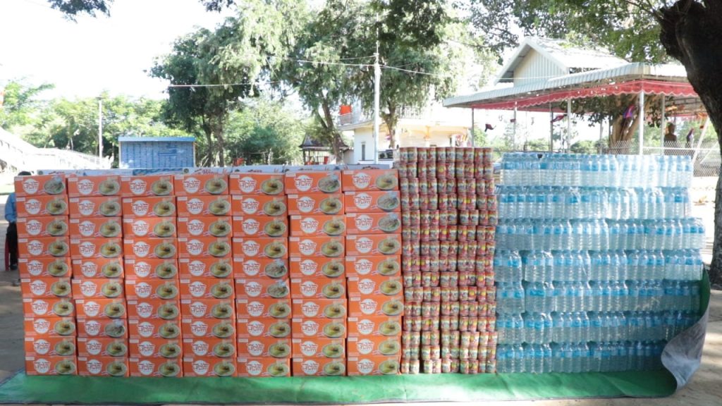 ឧត្ដមសេនីយ៍ទោ សោម ស៊ុន បាន ឧបត្ថម្ភ អំណោយ របស់ ឯកឧត្តម បណ្ឌិត ហ៊ុន ម៉ាណែត និងលោកជំទាវ ពេជ ចន្ទមុន្នី ជូនប្រជាការពារចំនួន ៧៥នាក់ ដោយក្នុងម្នាក់ៗ ទទួលបាននូវមីចំនួន២កេស ត្រី ខកំប៉ុងចំនួន១យួរ ទឹកពិសារបរិសុទ្ឋចំនួន១យួរ និងថវិកាមួយចំនួនផងដែរ ៕ ដោយ ប៊ុន រដ្ឋា