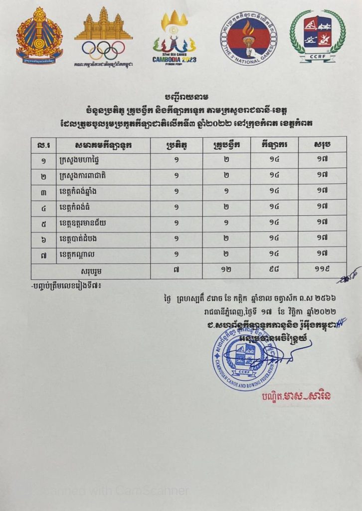 សមាគមកីឡាទូកចំនួន៧ចូលរួមប្រជែងក្នុងព្រឹត្តិការណ៍កីឡាជាតិលើកទី៣