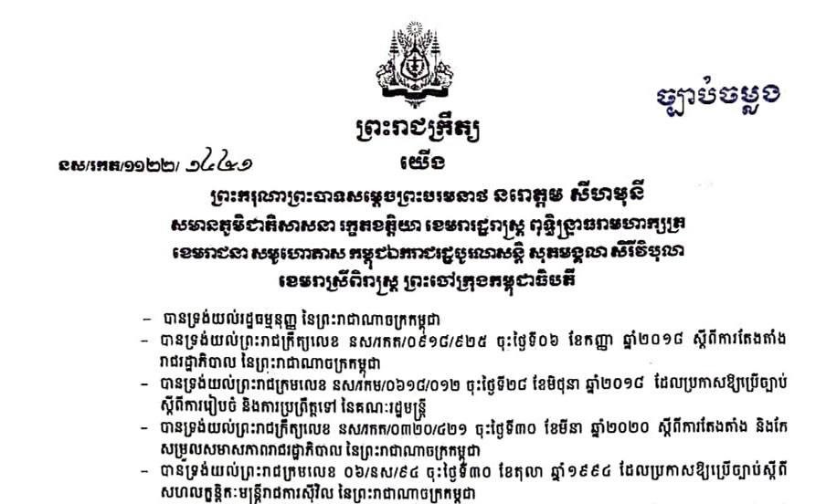 ព្រះរាជក្រឹត្យតែងតាំងអភិបាល ខេត្តឧត្តរមានជ័យ ខេត្តសៀមរាប ខេត្តត្បូងឃ្មុំ សម្រាប់អាណត្តិទី២One-Minuteអត្ថបទដោយ៖AMS OneMinute #ams1minute AMS OneMinuteអត្ថបទមុនអត្ថបទបន្ទាប់