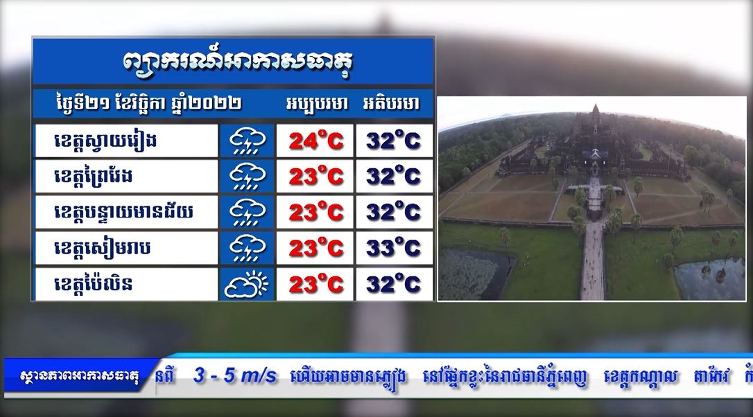 ព្យាករណ៌អាកាសធាតុ សម្រាប់ថ្ងៃទី២១ វិច្ឆិកា ២០២២ (មានវីដេអូ)