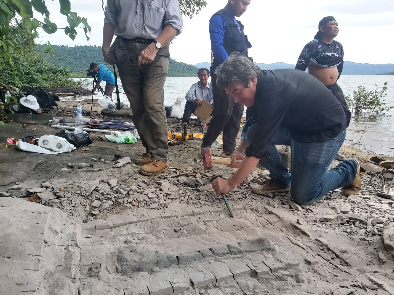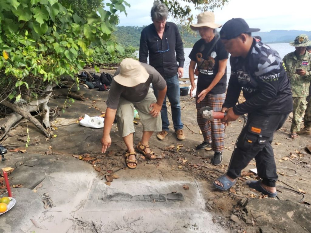 ខេត្តកោះកុង៖ ក្រុមការងារអ្នកជំនាញដែលបានចុះស្រាវជ្រាវ និងធ្វើការគាស់ផូស៊ីលឆ្អឹងដាយណូស័រនៅក្នុង កោះប៉ោ ជាប់ដែនជម្រកសត្វព្រៃតាតៃ ឃុំបាក់ខ្លង ស្រុកមណ្ឌលសីមា ខេត្តកោះកុង បានទទួលជោគជ័យបន្ទាប់ពីតស៊ូយ៉ាងស្វិតពេញមួយថ្ងៃនៅថ្ងៃទី២០ ខែវិច្ឆិកា ឆ្នាំ២០២២នេះ។
