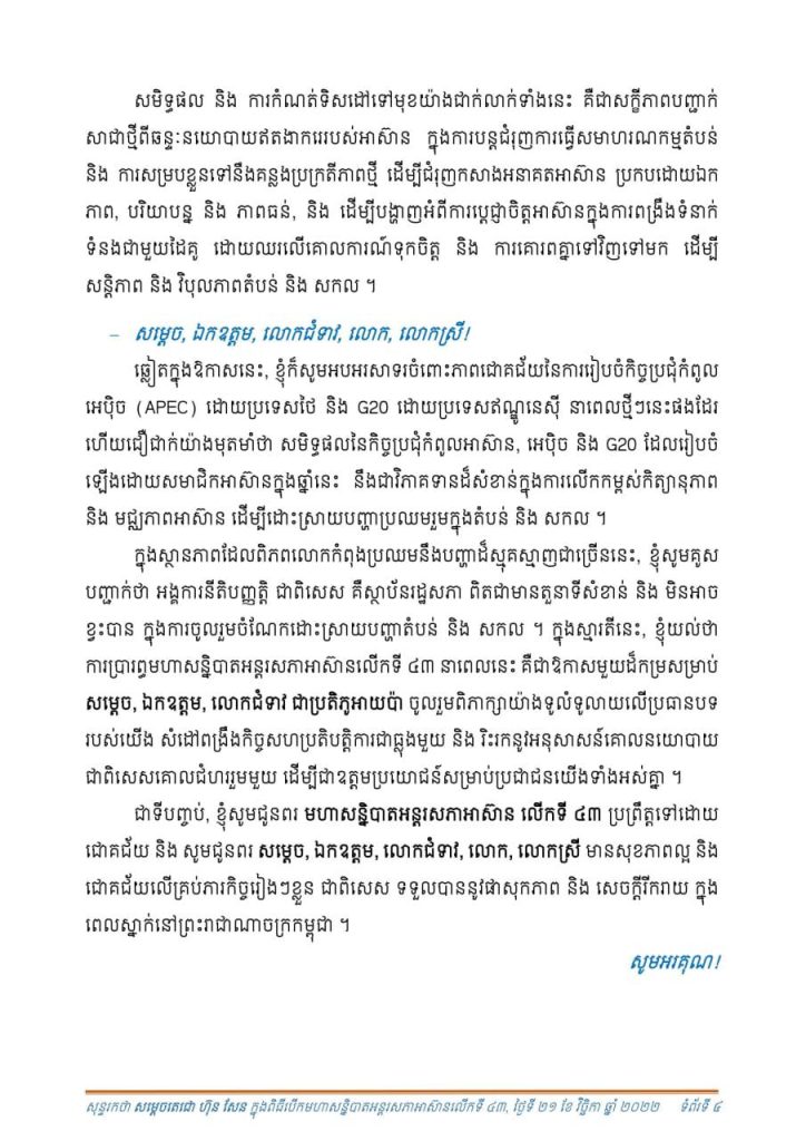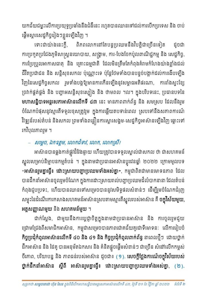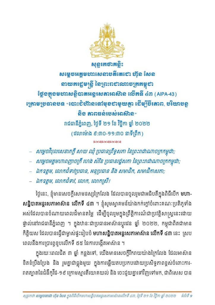 សុន្ទរកថារបស់សម្តេចតេជោ ហ៊ុន សែន ក្នុងឱកាសបើកមហាស ន្និបាតអន្តរសភាអាស៊ាន លើកទី៤៣ (AIPA-43)One-Minuteអត្ថបទដោយ៖AMS OneMinute ២១ វិច្ឆិកា ២០២២ #ams1minute AMS OneMinuteអត្ថបទមុនអត្ថបទបន្ទាប់