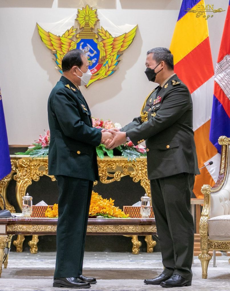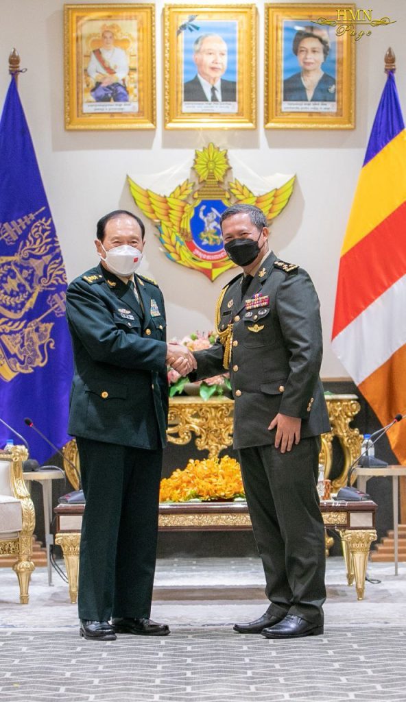 ឧត្តមសេនីយ៍ឯក ហ៊ុន ម៉ាណែត ជួបសម្តែងការគួរសមជាមួយរដ្ឋមន្ត្រីក្រសួងការពារជាតិចិន