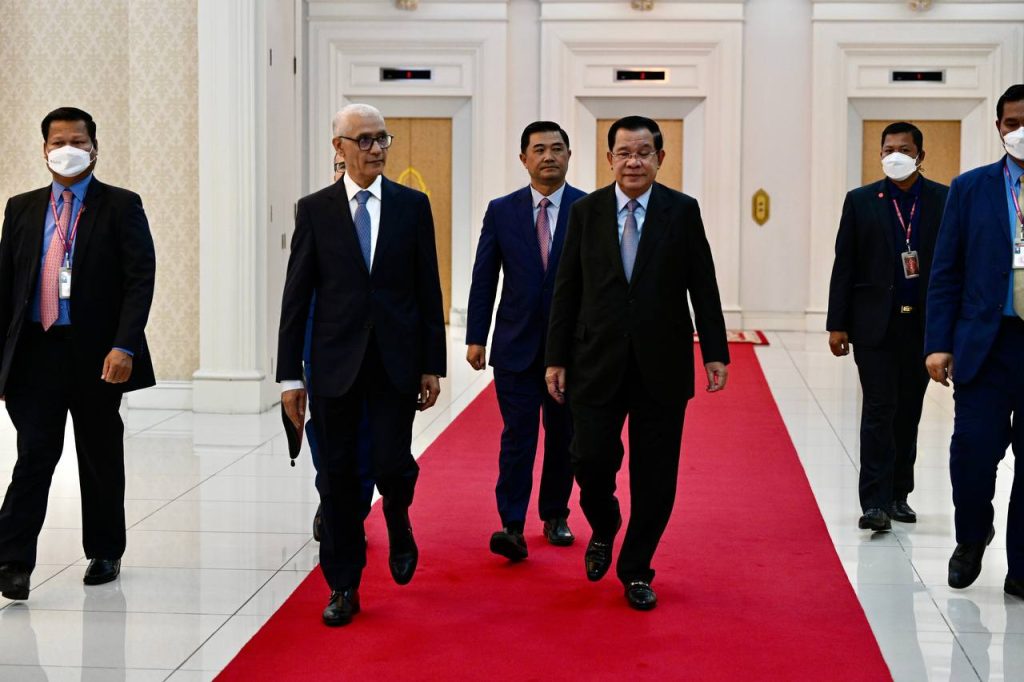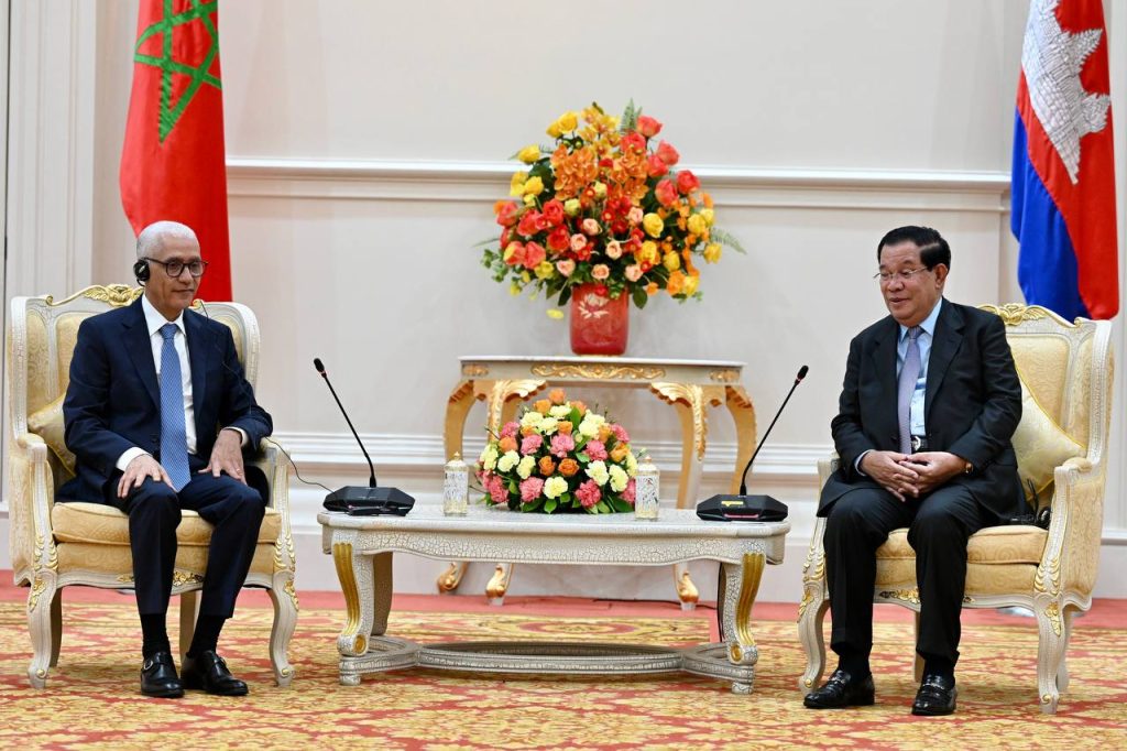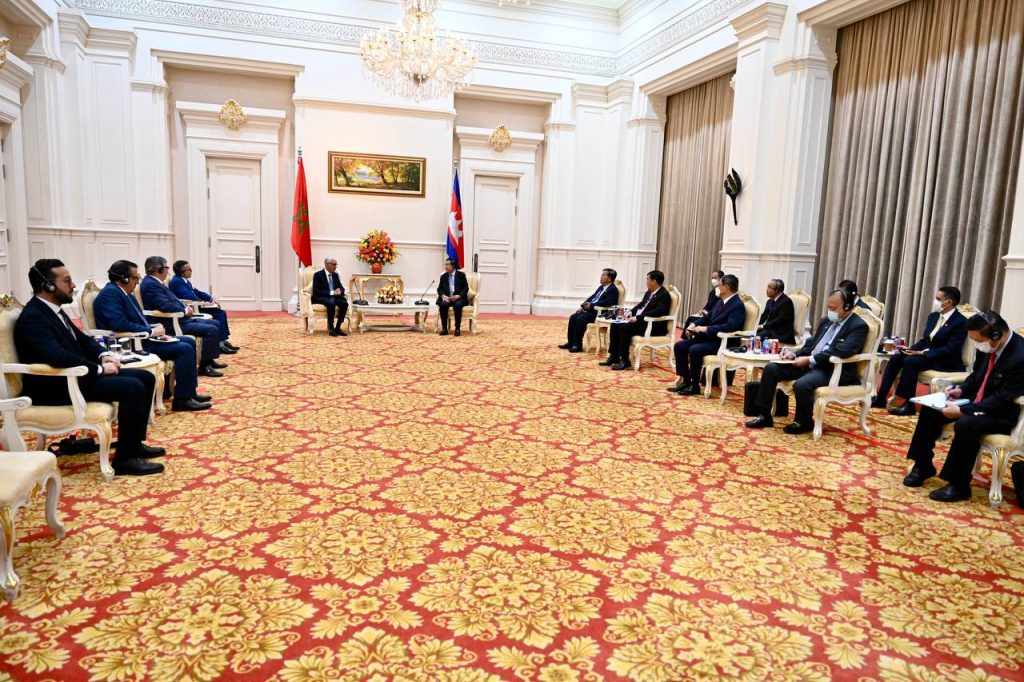 ភ្នំពេញ៖ ក្នុងជំនួបពិភាក្សាការងារជាមួយឯកឧត្តម Rachid Talbi Alami ប្រធានរដ្ឋសភាម៉ារ៉ុក នៅវិមានសន្តិភាព នាល្ងាចថ្ងៃទី២៣ ខែវិច្ឆិកា ឆ្នាំ២២០២២ សម្ដេចអគ្គមហាសេនាបតីតេជោ ហ៊ុន សែន នាយករដ្ឋមន្ត្រីនៃព្រះរាជាណាចក្រកម្ពុជា មានប្រសាសន៍ថា យើងអាចពិនិត្យរៀបចំកិច្ចព្រមព្រៀងមិនយកពន្ធត្រួតគ្នា ដើម្បីពង្រឹងពង្រីកវិស័យសេដ្ឋកិច្ច-ពាណិជ្ជកម្មរវាងប្រទេសទាំង២ ។