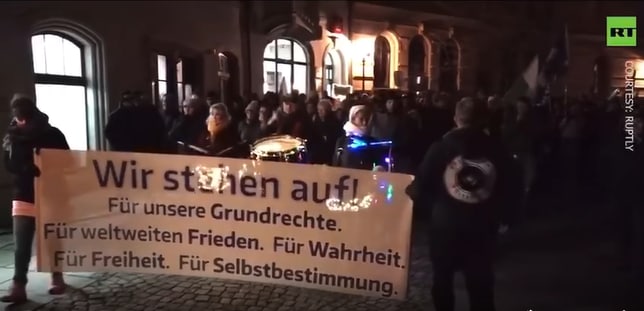 ប្រជាជនរាប់រយនាក់បានធ្វើបាតុកម្មតាមផ្លូវក្នុងតំបន់ Zwickau ប្រទេសអាល្លឺម៉ង់ 🇩🇪 ដើម្បីតវ៉ាប្រឆាំងនឹងចំណាត់ការរបស់រដ្ឋាភិបាល