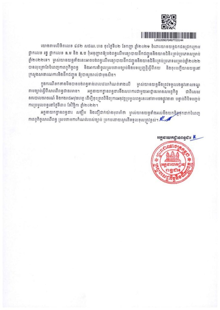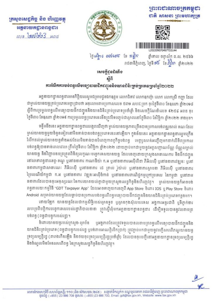 ការបង់ពន្ធផ្លូវរថយន្តនឹងបិទបញ្ចប់ស្ថាពរនៅថ្ងៃទី៣០ ខែវិច្ឆិកា ឆ្នាំ២០២២ នេះOne-Minuteអត្ថបទដោយ៖AMS OneMinute 👉 ការខកខាតមិនបានបង់ នឹងទទួលទោសទណ្ឌតាមច្បាប់ជាធរមាន។ #ams1minute AMS OneMinuteអត្ថបទមុនអត្ថបទបន្ទាប់