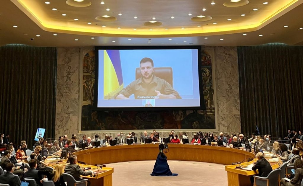 កៀវ៖ ប្រធានាធិបតីអ៊ុយក្រែន លោក វ៉ូឡូឌីមៀ ហ្សេលេនស្គី បានថ្កោលទោសការវាយប្រហាររបស់រុស្ស៊ីលើហេដ្ឋារចនាសម្ព័ន្ធថាមពលប្រទេសរបស់គាត់ និងបានចាត់ទុករុស្ស៊ីថា ជា “ភេរវករថាមពល”។ លោក ហ្សេលេនស្គី បានថ្លែងបែបនេះទៅកាន់កិច្ចប្រជុំបន្ទាន់មួយរបស់ក្រុមប្រឹក្សាសន្តិសុខអង្គការសហប្រជាជាតិ តាមរយៈតំណរភ្ជាប់វីដេអូក្នុងថ្ងៃពុធទី២៣ ខែវិច្ឆិកា ឆ្នាំ២០២២។