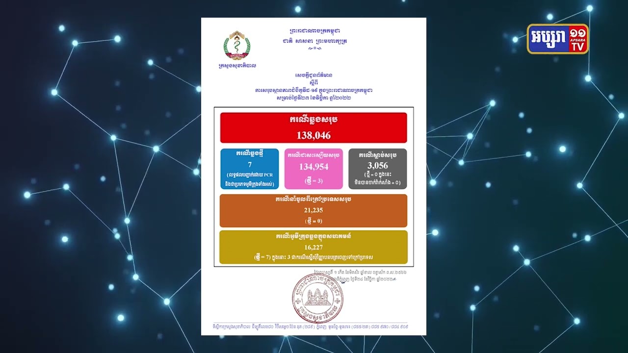 ២៤ម៉ោងចុងក្រោយកម្ពុជាមានតួលេខឆ្លងកូវីដ១៩ចំនួន ៧ករណី (Video Inside)