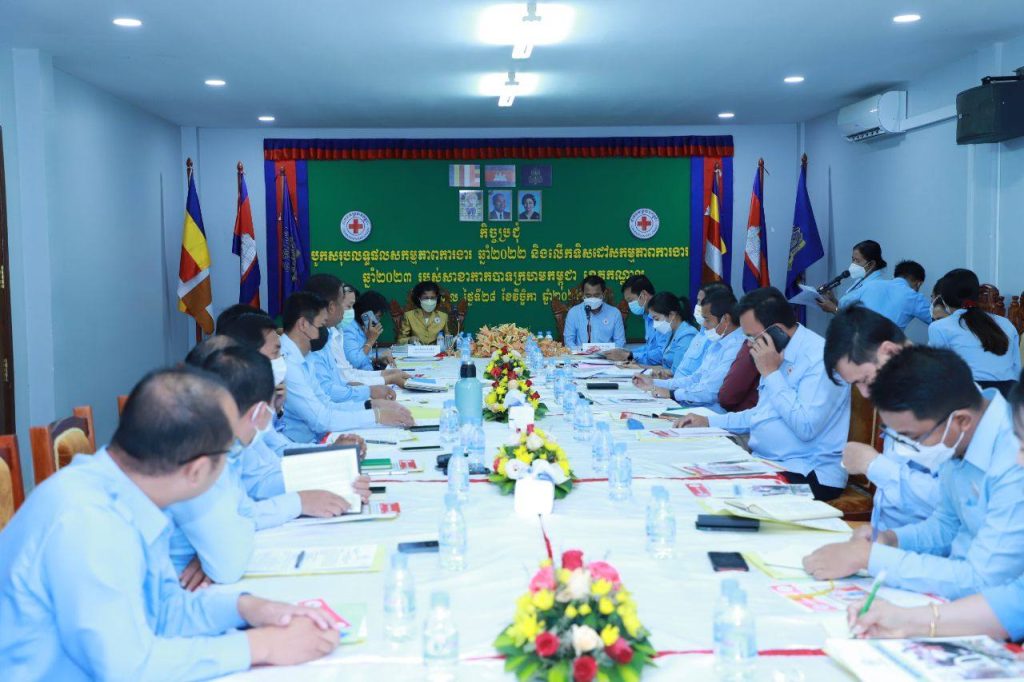 ខេត្តកណ្តាល ៖ លោកជំទាវ ពុំ ចន្ទីនី អគ្គលេខាធិការកាកបាទក្រហមកម្ពុជា និង ឯកឧត្តម គង់ សោភ័ណ្ឌ អភិបាល នៃគណៈអភិបាលខេត្ត និងជាប្រធានគណៈកម្មាធិការសាខាកាកបាទក្រហមកម្ពុជាខេត្តកណ្ដាល បានអញ្ជើញជាអធិបតី ក្នុងកិច្ចប្រជុំបូកសរុបលទ្ធផលសកម្មភាពការងារ ឆ្នាំ២០២២ និងលើកទិសដៅសកម្មភាពការងារ ឆ្នាំ២០២៣ របស់សាខាកាកបាទក្រហមកម្ពុជាខេត្តកណ្ដាល កាលពីថ្ងៃទី២៨ ខែវិច្ឆិកា ឆ្នាំ២០២២។