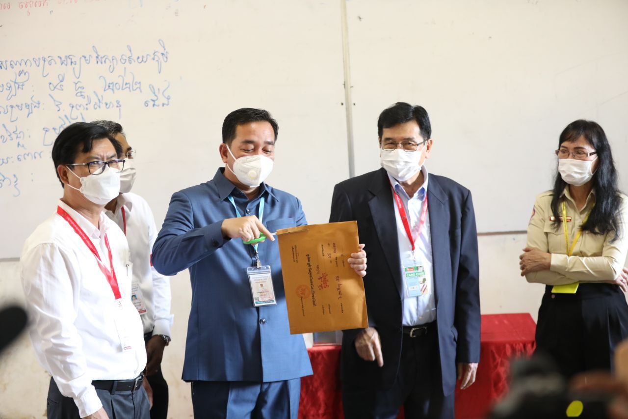 ខេត្តកំពង់ចាម ៖ ឯកឧត្តម អ៊ុន ចាន់ដា អភិបាលនៃគណៈអភិបាលខេត្តកំពង់ចាម និង ឯកឧត្តម ឡៅ ឈាវអ៊ាវ អនុរដ្ឋលេខាធិការក្រសួងអប់រំយុវជន និងកីឡា និងជាប្រធាន គណៈមេប្រយោគទូទាំងប្រទេស ប្រចាំខេត្តកំពង់ចាម និងលោកជំទាវ ម៉ា សូយុិនដា ឧបការីអង្គភាពប្រឆាំងអំពើពុករលួយ តំណាងដ៏ខ្ពង់ខ្ពស់ ឯកឧត្តម កិត្តិនីតិកោសលបណ្ឌិត ឱម យ៉ិនទៀង ប្រធានអង្គភាពប្រឆាំងអំពើពុករលួយ និងដោយមានការចូលរួមពីសំណាក់ ប្រតិភូក្រសួងអប់រំយុវជននិងកីឡា ប្រតិភូអង្គភាពប្រឆាំងអំពើពុករលួយ និងមន្ត្រីពាក់ព័ន្ធ អញ្ជើញកាត់វិញ្ញាសារប្រឡងសញ្ញាបត្រមធ្យមសិក្សាទុតិយភូមិ នៅមណ្ឌលវិទ្យាល័យព្រះសីហនុ ក្រុងកំពង់ចាម ។