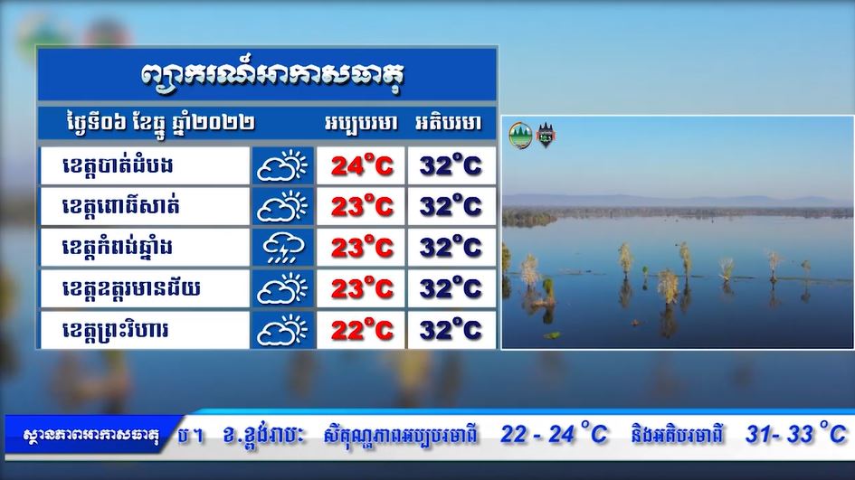 ព្យាករណ៌អាកាសធាតុ សម្រាប់ថ្ងៃទី៦ ឆ្នូ ២០២២ (មានវីដេអូ)