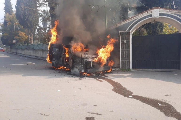 រូបភាពផ្សេងទៀតបានបង្ហាញរថយន្តយោធាកំពុងឆេះនិងសំបកកង់រាយប៉ាយតាមបណ្តោយផ្លូវនៅក្នុងទីក្រុងរបស់ប្រទេសស៊ីរី។ លោក Rayan Maalouf ប្រធានក្រុម Suwayda24 បានប្រាប់សារព័ត៌មាន The Associated Press ថា «មានការដាក់ពង្រាយកងកម្លាំងសន្តិសុខយ៉ាងច្រើននៅក្នុងតំបន់ ហើយអ្នកនៅតែអាចលឺសំឡេងកាំភ្លើង»។