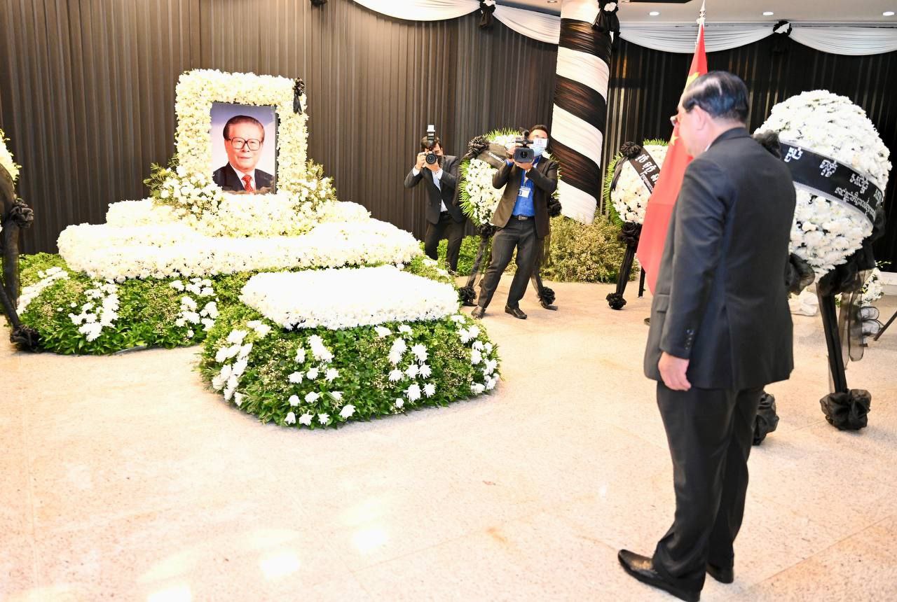 សម្ដេចបន្តថា មរណៈភាពរបស់ឯកឧត្តមអតីតប្រធានាធិបតី គឺជាការបាត់បង់ដ៏ធំធេងនូវរដ្ឋបុរសដ៏អស្ចារ្យរបស់ចិន ដែលបានលះបង់ពេលវេលាពេញមួយជីវិតរបស់ឯកឧត្តម ដើម្បីលើកកម្ពស់ជីវភាពរស់នៅរបស់ប្រជាជនចិន និងវិបុលភាពនៃប្រទេសចិន។