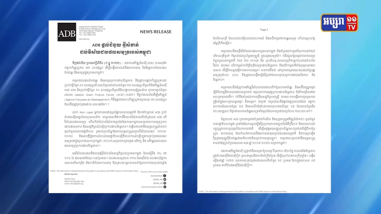 ADB ផ្តល់ជំនួយ៧៣លានដុល្លារ (Video Inside)