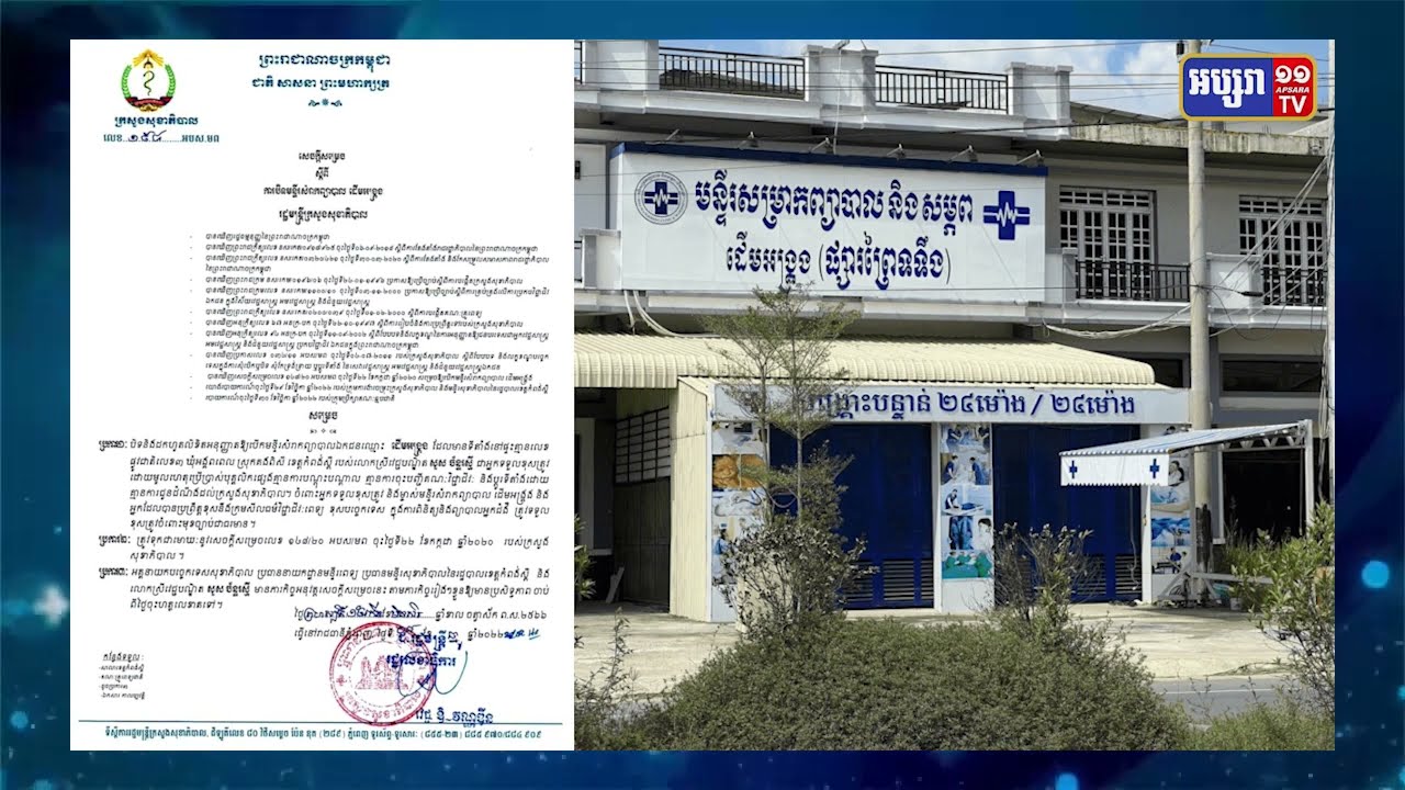 ក្រសួងសុខាភិបាលបានសម្រេចបិទ Clinic ឯកជន «ដើមអង្ក្រង» ក្នុងស្រុកគងពិសី ខេត្តកំពង់ស្ពឺ និងតម្រូវឱ្យអ្នកប្រព្រឹត្ត និងអ្នកទទួលខុសត្រូវ ត្រូវប្រឈមមុខចំពោះមុខច្បាប់ថែមទៀត។