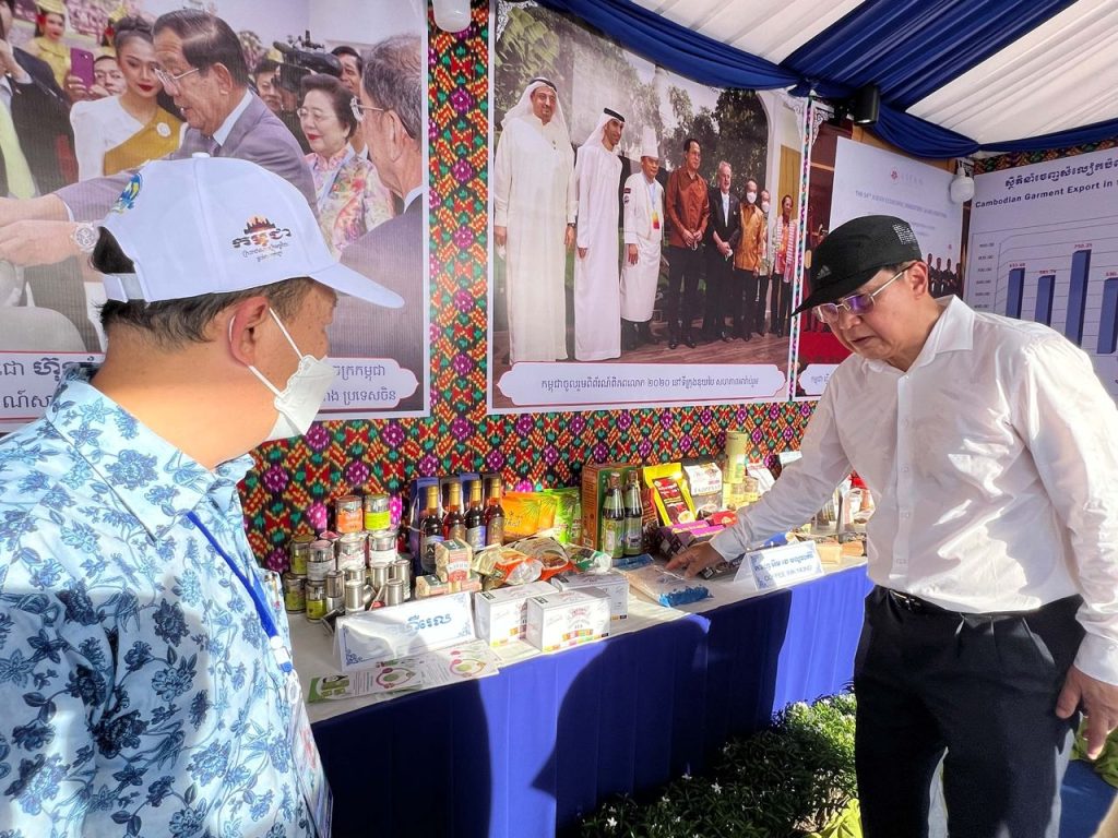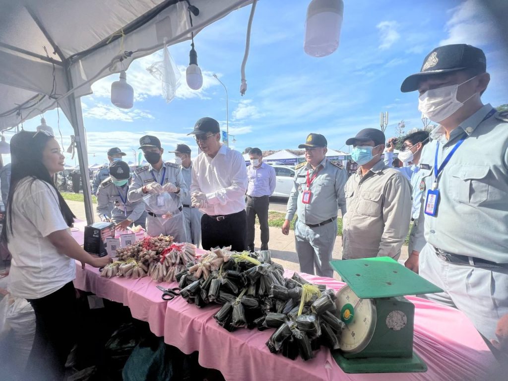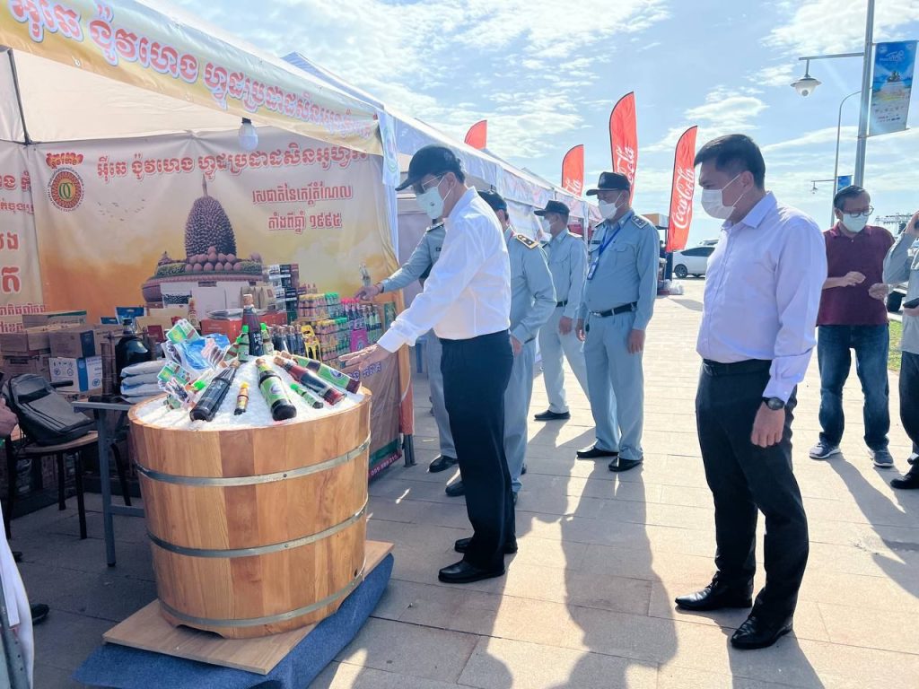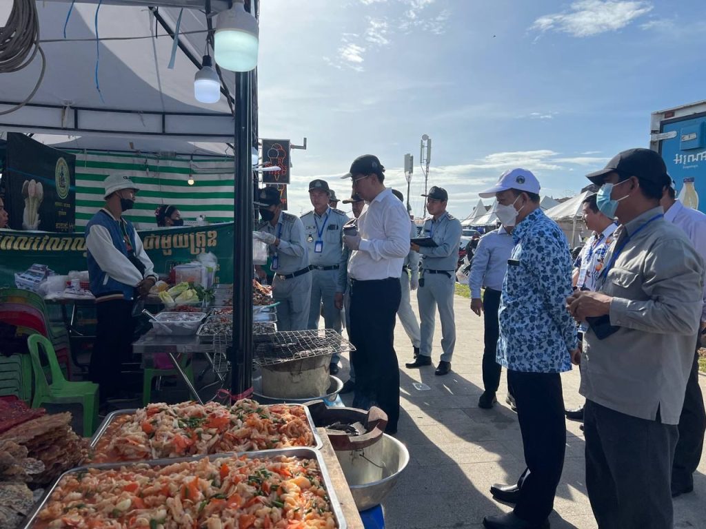 ឯកឧត្តម រដ្ឋមន្រ្តីក្រសួងពាណិជ្ជកម្ម ពិនិត្យស្តង់លក់ ម្ហូបអាហារ ភេសជ្ជៈ និងគ្រឿងឧបភោគ បរិភោគ មួយចំនួន ក្នុងពិធីតាំងពិព័រណ៍ផលិតផល នៅបរិវេណទីលានតេជោ ក្នុងក្រុងព្រះសីហនុ ខេត្តព្រះសីហនុ