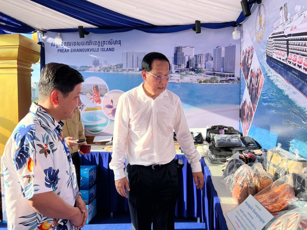 (ខេត្តព្រះសីហនុ) ៖ នៅរសៀលថ្ងៃទី ០៩ ខែធ្នូ ឆ្នាំ២០២២ ឆ្លៀតក្នុងឱកាសចូលរួមពិធីបុណ្យសមុទ្រលើកទី៩ ជុំទី៣ ឆ្នាំ២០២២ ឯកឧត្តម ប៉ាន សូរស័ក្កិ រដ្ឋមន្រ្តីក្រសួងពាណិជ្ជកម្ម បានអញ្ជើញចុះទៅពិនិត្យស្តង់លក់ ម្ហូបអាហារ ភេសជ្ជះ និងគ្រឿងឧបភោគ បរិភោគ មួយចំនួន ក្នុងពិធីតាំងពិព័រណ៍ផលិតផល នៅបរិវេណទីលានតេជោ ក្នុងក្រុងព្រះសីហនុ ខេត្តព្រះសីហនុ។