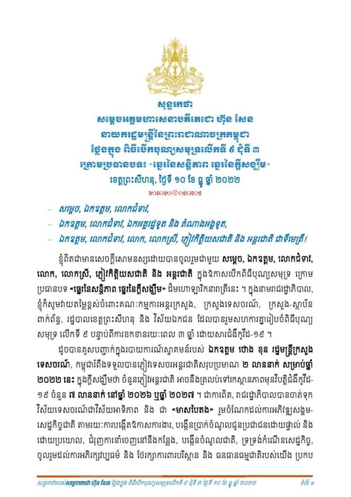 សុន្ទរកថាសម្តេចតេជោ បើកពិធីបុណ្យសមុទ្រលើកទី៩One-Minuteអត្ថបទដោយ៖AMS OneMinute #ams1minute AMS OneMinuteអត្ថបទមុនអត្ថបទបន្ទាប់