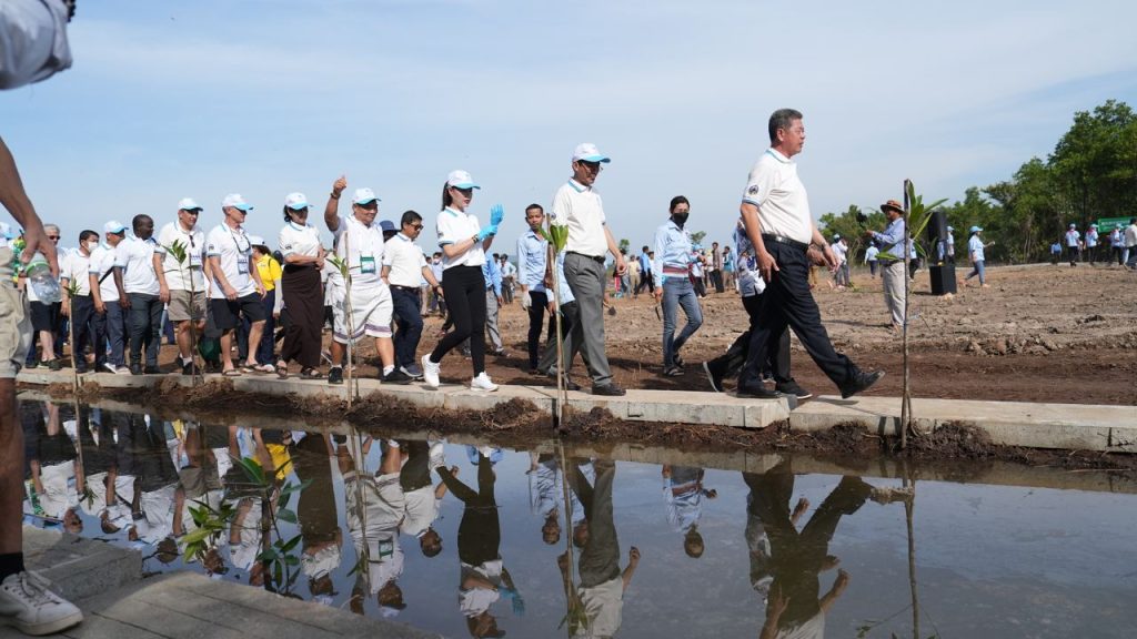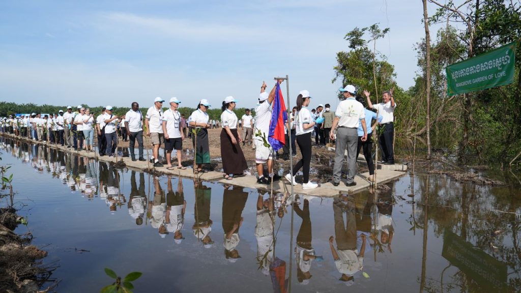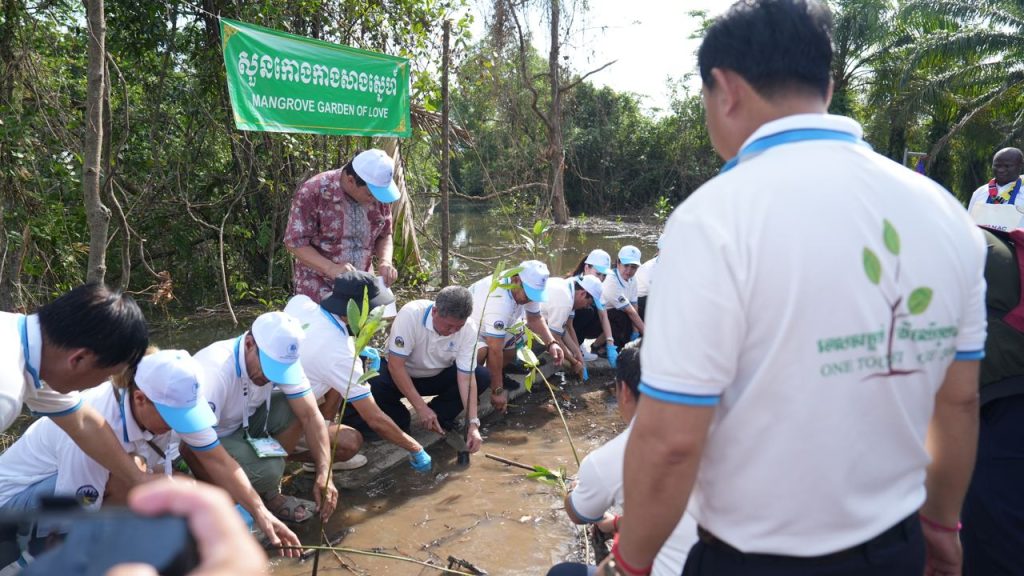 ខេត្តព្រះសីហនុ៖ ឯកឧត្តម គួច ចំរើន អភិបាលនៃគណៈអភិបាលខេត្ត ព្រះសីហនុ រួមជាមួយឯកឧត្តម នី ផល្លី រដ្ឋលេខាធិការក្រសួងទេសចរណ៍ តំណាងដ៏ខ្ពង់ខ្ពស់ ឯកឧត្តមបណ្ឌិត ថោង ខុន រដ្ឋមន្រ្តី ក្រសួងទេសចរណ៍ និងជាប្រធានគណៈកម្មការអន្តរក្រសួងរៀបចំពិធីបុណ្យសមុទ្រលើកទី៩ ជុំទី៣ និងមហាសន្និបាតក្លឹបឆ្នេរ សមុទ្រដែលស្អាតបំផុតលើពិភពលោក ឆ្នាំ២០២២ នាព្រឹកថ្ងៃទី១១ ខែធ្នូ ឆ្នាំ២០២២នេះ បានដឹកនាំ គណៈប្រតិភូឆ្នេរសមុទ្រស្អាតបំផុតលើលោក ដាំដើមកោងកាងអនុស្សាវរីយ៍ នៅវាលកោងកាងសាងស្នេហ៍ ឃុំតានៃ ស្រុកព្រៃនប់ ខេត្តព្រះសីហនុ ។