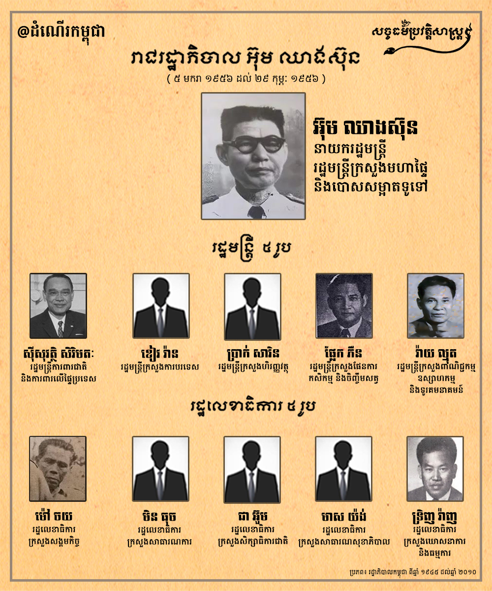 រាជរដ្ឋាភិបាលកម្ពុជានាអតីតកាលតែងមានការផ្លាស់ប្ដូរច្រើន ដោយសារតែរបត់របបនយោបាយ និងការស្វែងរកនូវដំណោះស្រាយផ្សេងៗ ជូនប្រជាជាតិ និងមាតុភូមិ។ ជាក់ស្ដែងថ្ងៃនេះកម្មវិធីសច្ចធម៌ប្រវត្តិសាស្ដ្រសូមលើកយករាជរដ្ឋាភិបាល អ៊ុម ឈាងស៊ុន ដើម្បីចែករំលែកនូវចំណេះដឹងអំពីប្រវត្តិសាស្ដ្រនៃការគ្រប់គ្រង ដែលមានអាយុកាល ២ខែប៉ុណ្ណោះ ដោយគិតចាបប់ពីថ្ងៃទី៥ ខែមករា ឆ្នាំ១៩៥៦ ដល់ ថ្ងៃទី២៩ ខែកុម្ភៈ ឆ្នាំ១៩៥៦៕