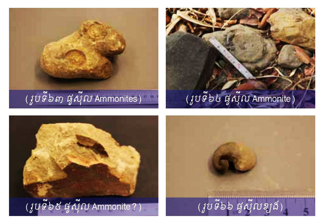 ក្រុមការងារបានរកឃើញប្រភេទផូស៊ីលពពួក Ammonite (អាម៉ូណាយ) មានរូបរាងស្រដៀងខ្យង មានជើងដូចមឹក និងពពួកខ្យង លៀស គ្រំ។ ពពួកនេះកើតឡើងនៅស័ក Mesozoic (មេសូហ្សូអ៊ីក) ក្នុងសម័យកាល Jurassic (ជូរ៉ាស៊ីក) អាយុកាលចន្លោះ (១៩៩.៦-២៥១លានឆ្នាំ) ៕