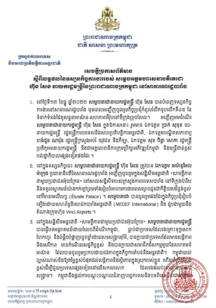 លទ្ធផលនៃទស្សនកិច្ចការងាររបស់ សម្តេចអគ្គមហាសេនាបតីតេជោ ហ៊ុន សែន នាយករដ្ឋមន្ត្រីនៃព្រះរាជាណាចក្រកម្ពុជា នៅសាធារណរដ្ឋបារាំង 🇰🇭🇫🇷One-Minuteអត្ថបទដោយ៖AMS OneMinute #ams1minute AMS OneMinuteអត្ថបទមុនអត្ថបទបន្ទាប់