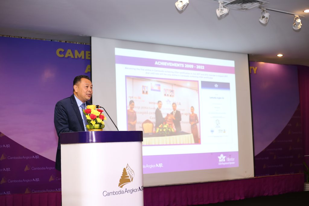 ឯកឧត្តមប្រធានក្រុមប្រឹក្សាភិបាលបានបន្តថាក្រោយជំងឺកូវីដ១៩ក្រុមហ៊ុនអាកាសចរណ៍ជាតិកម្ពុជាអង្គរអ៊ែរគឺជាក្រុមហ៊ុនអាកាសចរណ៍ជាតិតែមួយគត់ត្រូវបានបង្កើតឡើងក្រោមទម្រង់ចម្រុះរដ្ឋនិងឯកជន។ក្រុមហ៊ុនអាកាសចរណ៍ជាតិកម្ពុជាអង្គរអ៊ែរដើរតួនាទីយ៉ាងសំខាន់ក្នុងការលើកកម្ពស់វិស័យទេសចរណ៍ជាតិនិងការអភិវឌ្ឍសេដ្ឋកិច្ចក្នុងរយៈពេលជាង១០ឆ្នាំកន្លងមកនេះ។ក្រុមហ៊ុនអាកាសចរណ៍ជាតិកម្ពុជាអង្គរអ៊ែរបានបន្តពង្រីកការហោះហើរទៅកាន់គោលដៅទេសចរណ៍សំខាន់ៗចំនួន ១៤ រួមមាន រាជធានីភ្នំពេញ ខេត្តសៀមរាប ខេត្តព្រះសីហនុ ទីក្រុងហាណូយ ហូជីមិញ ដាណាំង ប៉េកាំង សៀងហៃ ក្វាងចូវ ហៃគូ ណាននីង ចិនចូវ ហាំងចូវ ម៉ាកាវ។