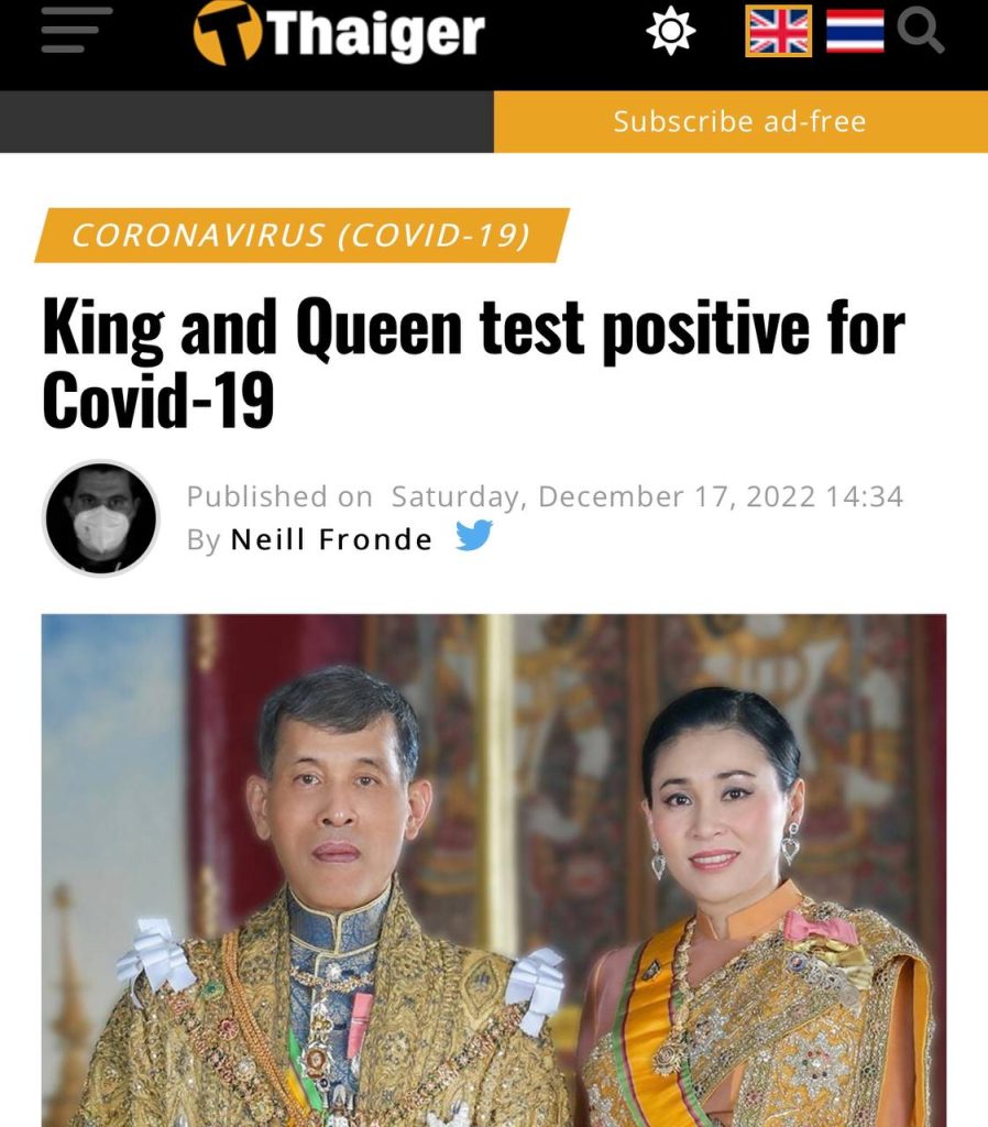 ព្រះមហាក្សត្រថៃ និង ម្ចាស់ក្សត្រី វិជ្ជមាន កូវីដ-១៩